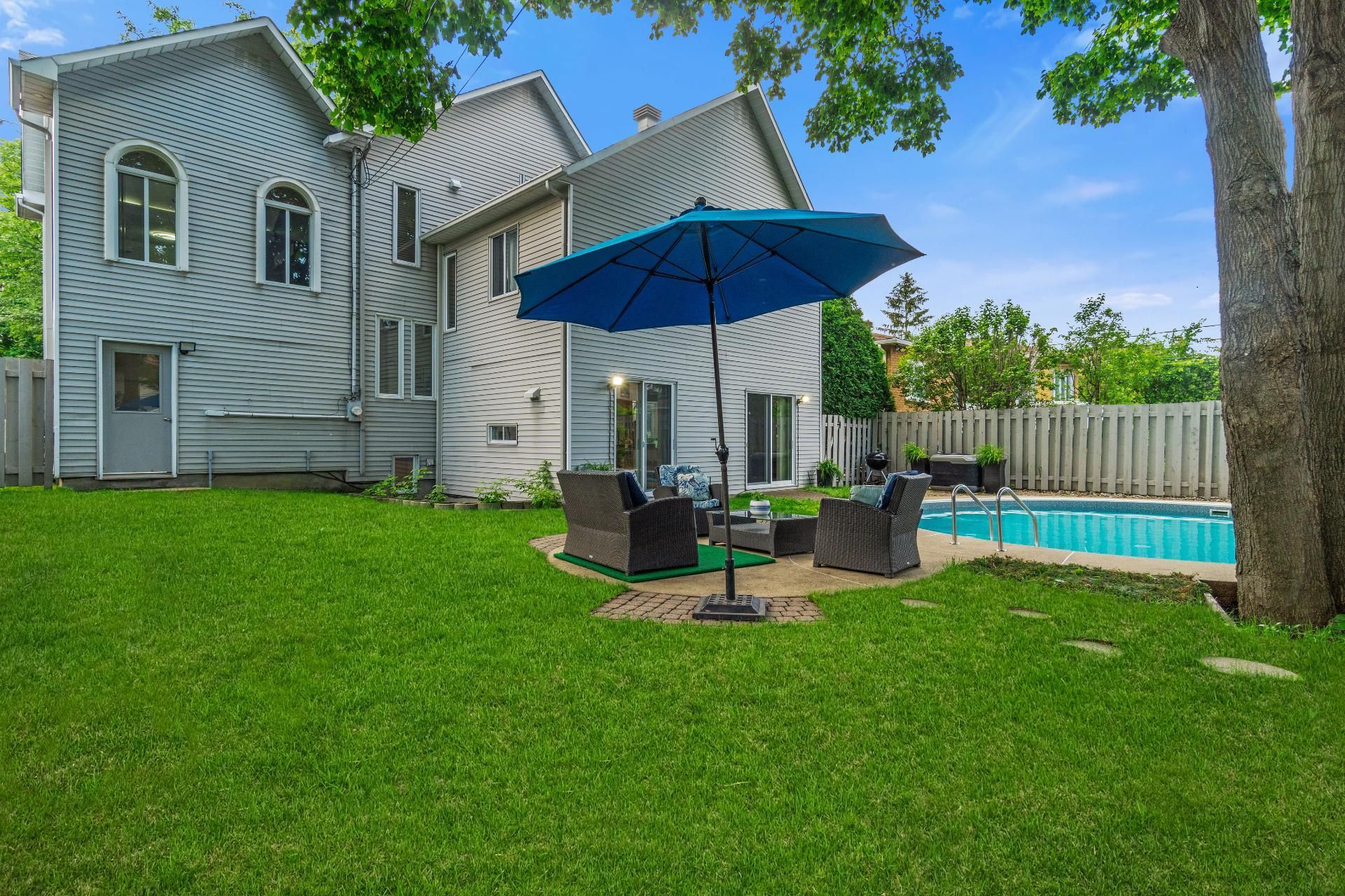 The spacious and sunny backyard is a true oasis, featuring