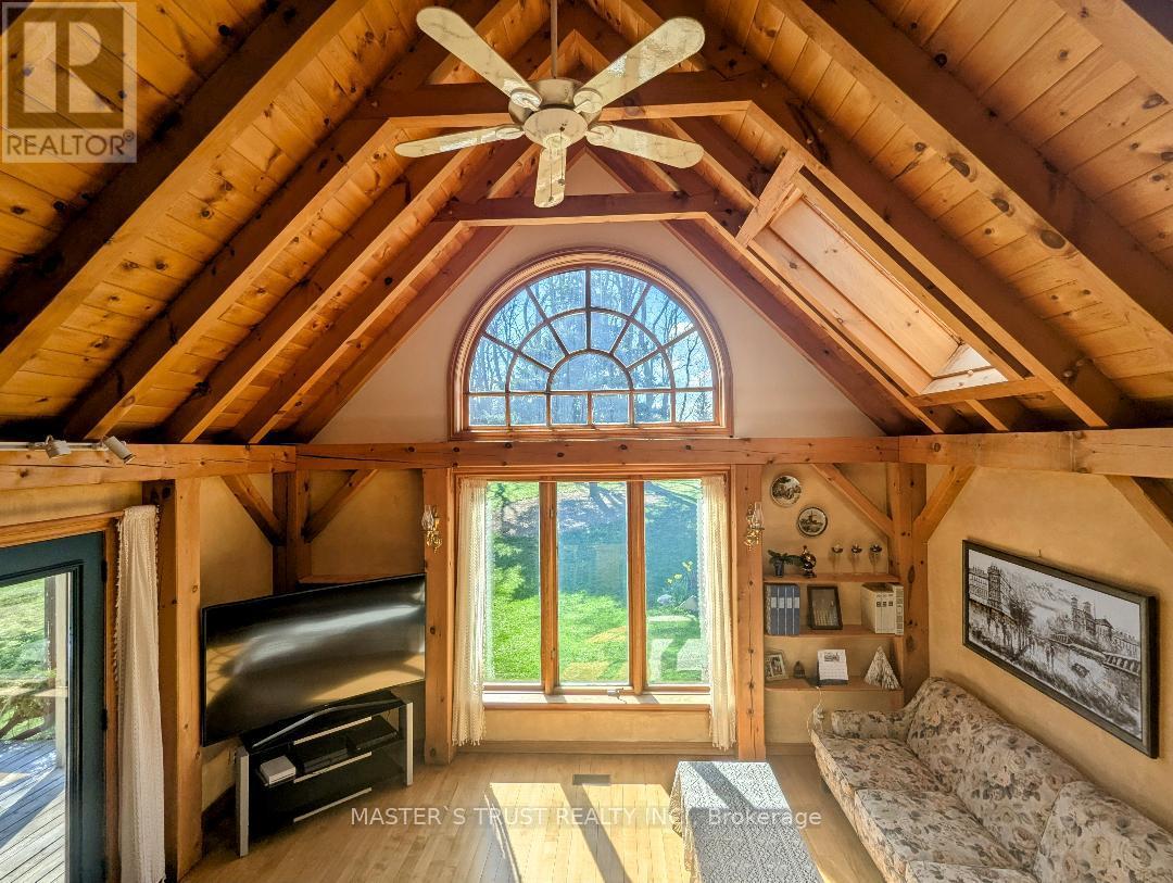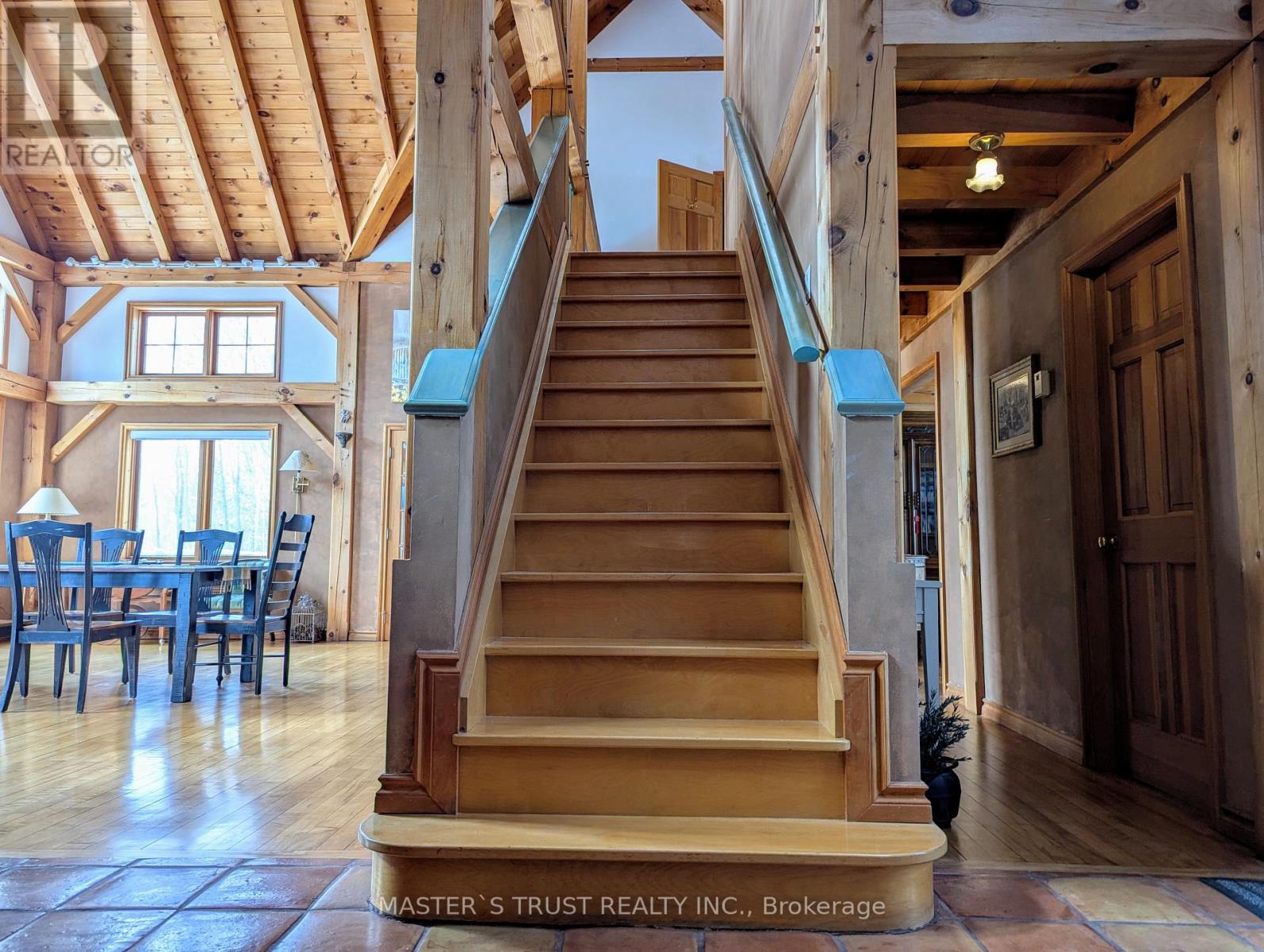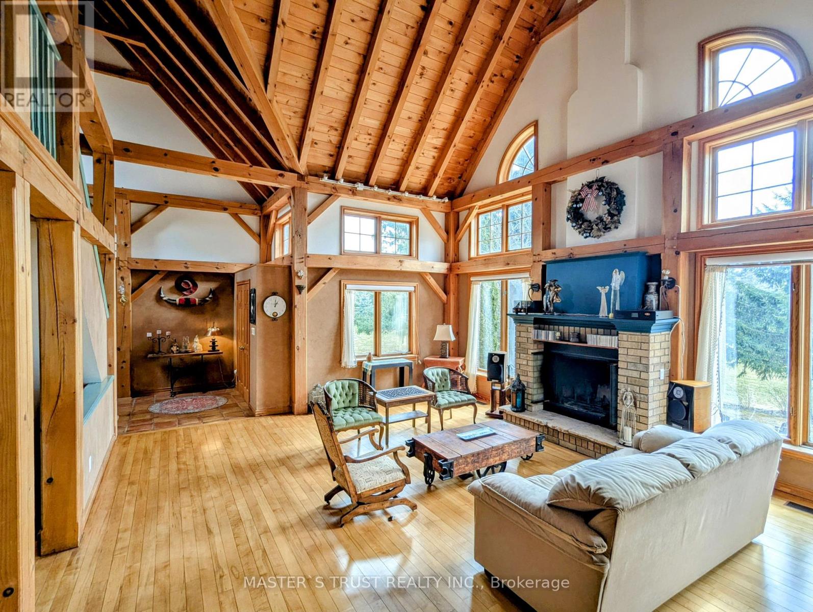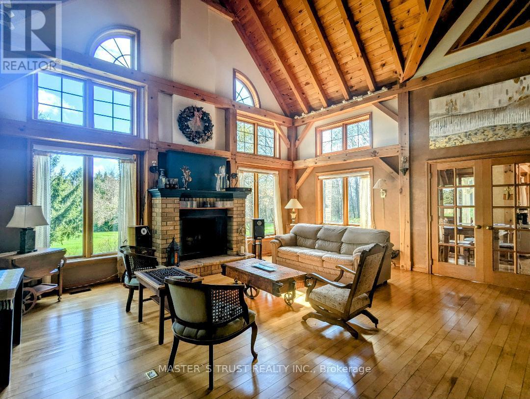 40 Minutes Away From Toronto, Away From The Hustle And Bustle, Enjoy This Rare Timber Cottage Of Almost 5500 Sq Ft Resort Living Space Every day. The Art of Timber Frame Construction. Our Dramatic Home Showcases Cathedral Ceiling With Almost 23' High With The Towering Strength And Beauty Of Exposed Posts And Beams United By Oak Dowels With Dovetail And Mortise And Tenon Joints Built By Normerica. Open Concept Bungaloft Is Nestled In Green Enclave Adjacent To Royal Stouffville Golf Course. Enjoy Terrific Views From The Rear Deck, Patio, Even Nearly Each Window. Tropical Bohemian Curtains Filled In Living/Dining/Family Room. The Peaceful Space Atmosphere Allows People Fully Relax. Walkout Bsmt With Licence Of Airbnb Rental From Stouffville City Hall Which earned over $25,000 of Rental Income per year. Why Are There Cracks in the Timber of New Timber Frame Structure? You May Think Its A Flaw In The Timber Used, But Rest Assured, Its NOT! Pls Check Out Attached Files in Website. (id:63285)