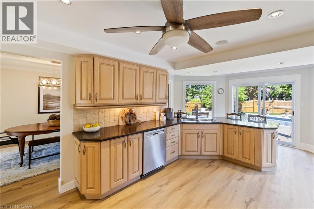 A true unicorn property in the highly sought-after Headon Forest community! This rare gem sits on a premium 95ft x 111ft corner lot tucked into a quiet, kid-friendly cul-de-sac—just minutes from top-rated schools, parks, and shopping. Offering over 2,550 sq ft of above-grade living space plus 1100+ sq ft in the finished basement with a separate entrance, this home is ideal for growing families or multi-generational living. The oversized 2.5-car garage is ready for EV service and offers interior access to the basement. Boasting 4+1 spacious bedrooms, 3.5 updated bathrooms, and a dedicated home theatre in the lower level, this home is built for comfort and function. The custom solid maple kitchen with granite counters and stainless-steel appliances flows beautifully into the main living area and walks out to a stunning 2,000+ sq ft patterned concrete deck. Your private backyard oasis includes a heated in-ground 32ft x 16ft saltwater pool, 8-person Sundance hot tub, and large garden shed—all wrapped in an impressive 10ft privacy fence with sturdy 6x6 posts for added seclusion. Additional highlights: dual 8ft gated entrances on both sides of the yard for easy access, upgraded flooring throughout, a newly refinished staircase, and a fully updated ensuite bath. (id:63285)