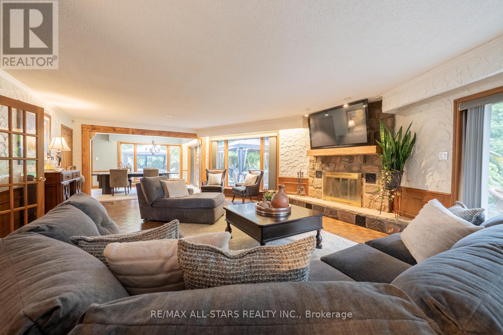 A Rare & Versatile Opportunity on an over 1-Acre Corner Lot in Rural Stouffville. Welcome to a truly unique offering, a stunning ranch bungalow featuring 2 completely separate living spaces, well-suited for multigenerational living or extended family accommodations. Situated on a beautifully landscaped lot with mature trees, armour stone & lush gardens. This home has over 6000 sqft of finished living space spread over 2 levels with 2 separate large driveways, their own front entrances & own garage spaces.The main level spans over 3,400 sqft & offers 4 spacious bedrooms, 3 bathrooms & an airy layout filled with natural light. The open-concept great room features a wood-burning fireplace & custom built-ins, seamlessly flowing into the kitchen with a central island, coffee station, walk-in pantry & two walkouts to the backyard. The large home office boasts wall-to-wall diamond-pattern windows, rich wainscoting & custom built-ins. The primary suite is a private retreat with a 5-piece ensuite, walk-in closet & walkout to the deck. Additional highlights on this level include a large mudroom/laundry room with garage & backyard access, a 3-car garage & parking for 10+ vehicles. Step outside to an entertainers dream: an outdoor kitchen, covered dining area, hot tub under the gazebo, and a greenhouse - all with complete privacy, huge mature trees & fully fenced in.The lower level is more than just a walkout basement suite, it really is its very own home. With approximately 2000 sqft of finished living space with its own front entry. This space includes a full kitchen, large family room, home office, gym, bedroom with 5-piece ensuite, den, laundry & plenty of storage. Behind the scenes this home has 2 furnaces, 2 A/C units, and 400amp service. Plus the bonus in-ground irrigation system adding ease to property maintenance. Ideally located minutes from Hwy 404 & Aurora Rd. Neighbourhood trails connecting to Vandorf Park with baseball diamonds, tennis & pickle ball courts & more. (id:63285)