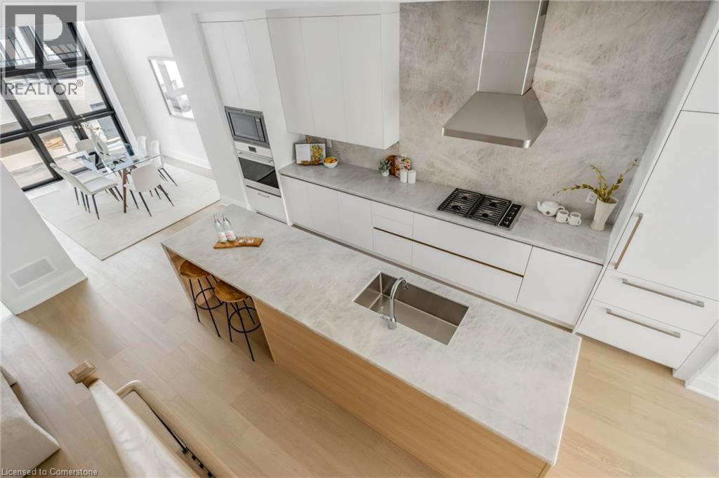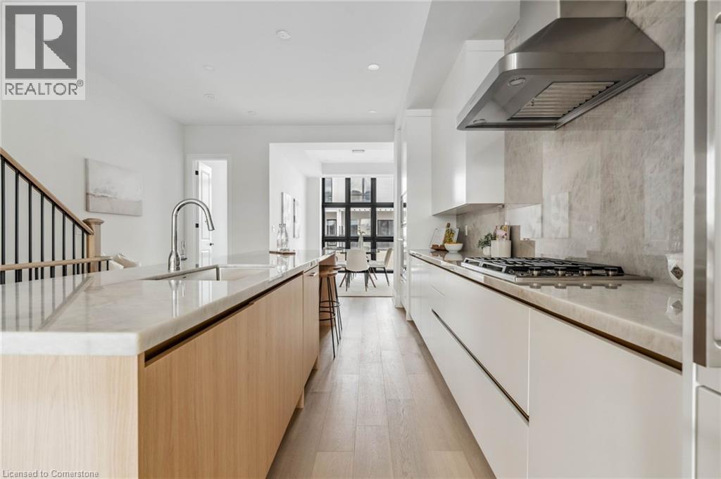 An exceptional opportunity to own a brand new luxury executive townhome by Sunfield Homes, ideally located within walking distance to Bronte Harbour and the scenic shores of Lake Ontario. Nestled in the vibrant heart of Bronte Village, you're just steps from boutique shops, local restaurants, transit, the Bronte Marina, and the area's beloved annual festivals. This beautifully designed home has over $100,000 of upgrades, and offers approximately 3,019 sq. ft. of finished living space, including a 726 sq. ft. finished basement. A true showcase offering a blend of comfort, functionality, and elevated finishes. Enjoy wide-plank engineered oak flooring, 24 x 24 porcelain tiles, smooth ceilings, and over 20 pot lights throughout the home. The spacious kitchen is a standout feature, complete with Taj Mahal Quartzite countertops, a stunning slab backsplash, an oversized island, and five built-in appliances, perfect for both casual dining and entertaining. Architectural details include a custom oak staircase with metal pickets, 10-foot ceilings on the second floor (main living level), and 9-foot ceilings on the remaining floors, creating an open and airy atmosphere. A 141 sq. ft. outdoor terrace extends your living space, offering the perfect setting for morning coffee or evening gatherings. The ground floor bedroom or den features a walkout to the backyard, while the finished basement adds flexible space for a home office, gym, or media room. With its ideal location and thoughtful design, this move-in ready townhome offers an unparalleled lifestyle in one of Oakville’s most charming and walkable lakeside communities. (id:63285)