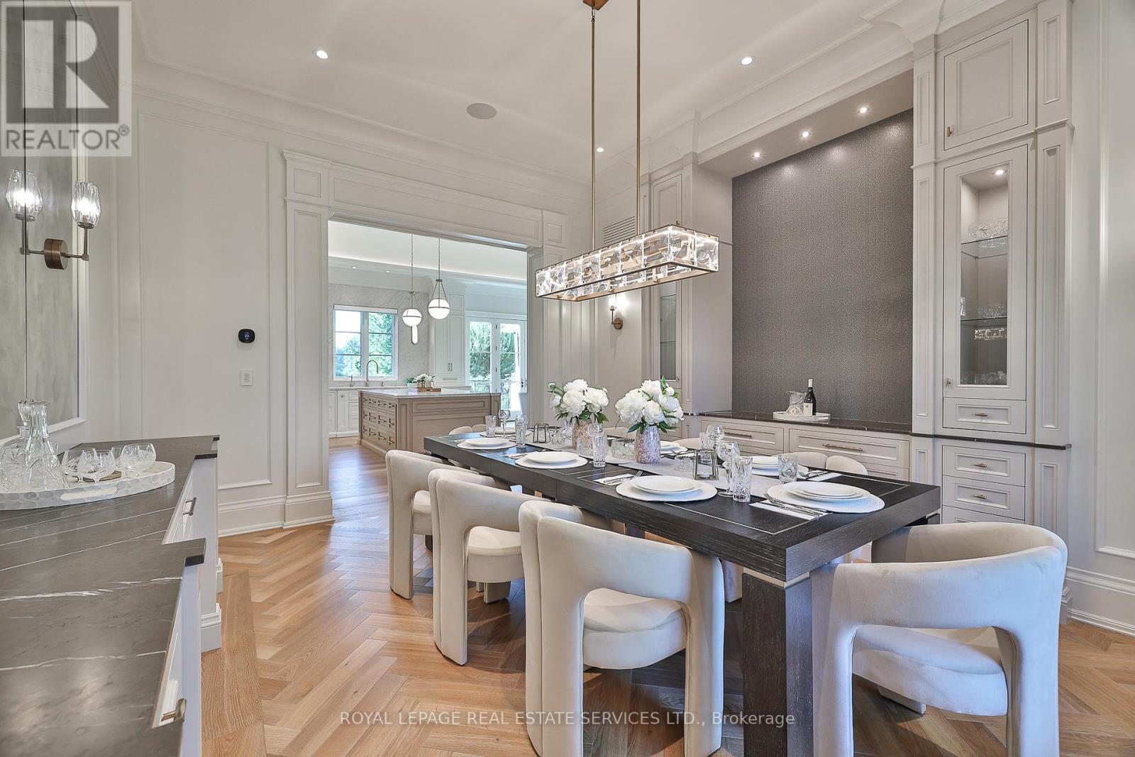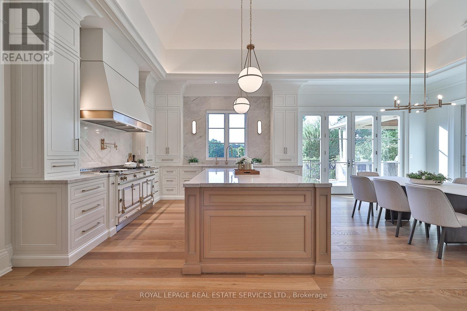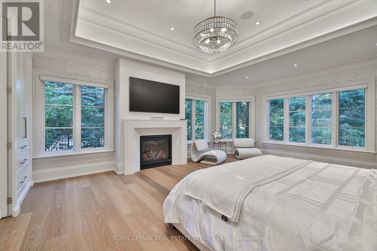 Welcome To Luxury Lifestyle Living At 16 Eversley Hall Fairfield Estates, Set On 2.2 Acres In The Prestigious Enclave Of Fairfield Estates, this Well Designed Raised Bunglalow Offers 10,000 Sq Ft Of Living Space. This Rare Offering Blends Timeless Architecture, European Craftsmanship, And Modern Luxury. From The Moment You Arrive, The Grand Mahogany Entrance And Stately Façade Hint At The Level Of Detail Within. Inside, Soaring 15 Ceilings Create A Sense Of Drama, Enhanced By A Custom One-piece Wrought Iron Staircase, Heated Marble, And Oak Herringbone Floors. Every Space Has Been Designed To Impress. The Chefs Kitchen Is A Showcase Of Elegance And Function, Featuring Taj Mahal Quartzite Counters, A La Cornue Range, Sub-zero And Miele Appliances, A Full Walk-in Pantry, And An Integrated Bar Perfect For Entertaining. The Residence Includes 4 Bedrooms And 8 Bathrooms, All With Spa-quality Finishes Such As Steam Showers, Heated Floors, And Bespoke Millwork. The Lower Level Extends The Living Experience With A Gym, Nanny Suite, State-of-the-art Theatre And Hockey Room, And A Designer Bar That Anchors The Ultimate Space For Gatherings. Outdoor Living Is Redefined With A 5,000 Sq. Ft. Stone Patios Overlooking A Gibsan Infinity Pool With Spa. A Lynx Outdoor Kitchen, 5 Fireplaces, And Snow-melt Systems Ensure Year-round Enjoyment, While Manicured Landscaping Provides Privacy And Beauty In Every Season. For The Automobile Enthusiast, The Radiant-heated Garage Includes Ev Rough-in And Advanced Systems, Supported By A 400-amp Backup Transfer For Complete Peace Of Mind. Every Element Of This Estate Has Been Carefully Curated To Deliver An Unparalleled Lifestyle Of Design, Technology, And Comfort. A True Masterpiece, 16 Eversley Hall Is Not Simply A Home, But A Statement Of Prestige And Refined Living In One Of The Regions Most Exclusive Communities. (id:63285)