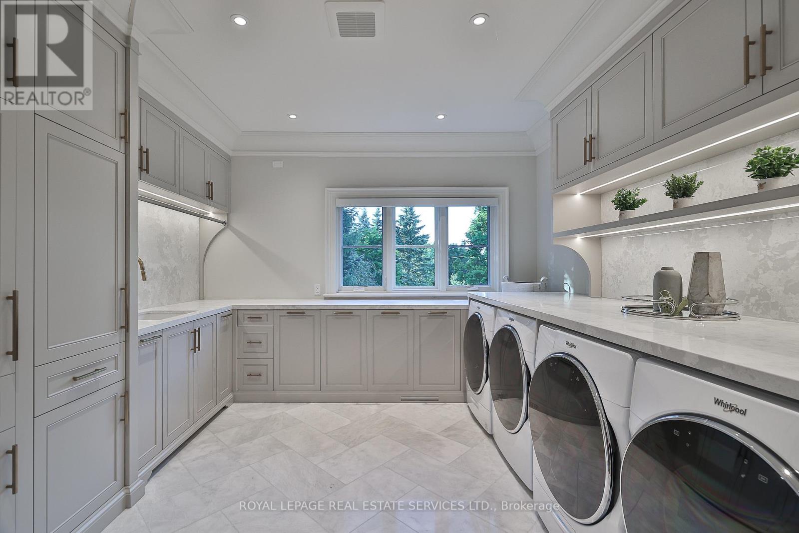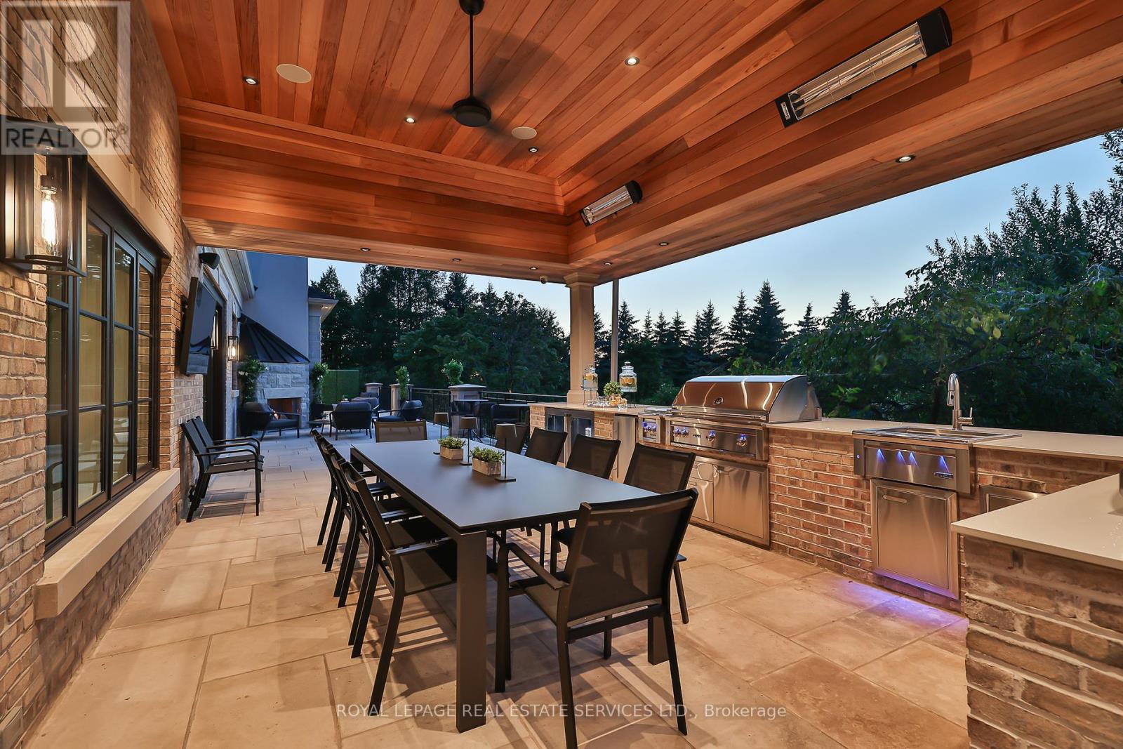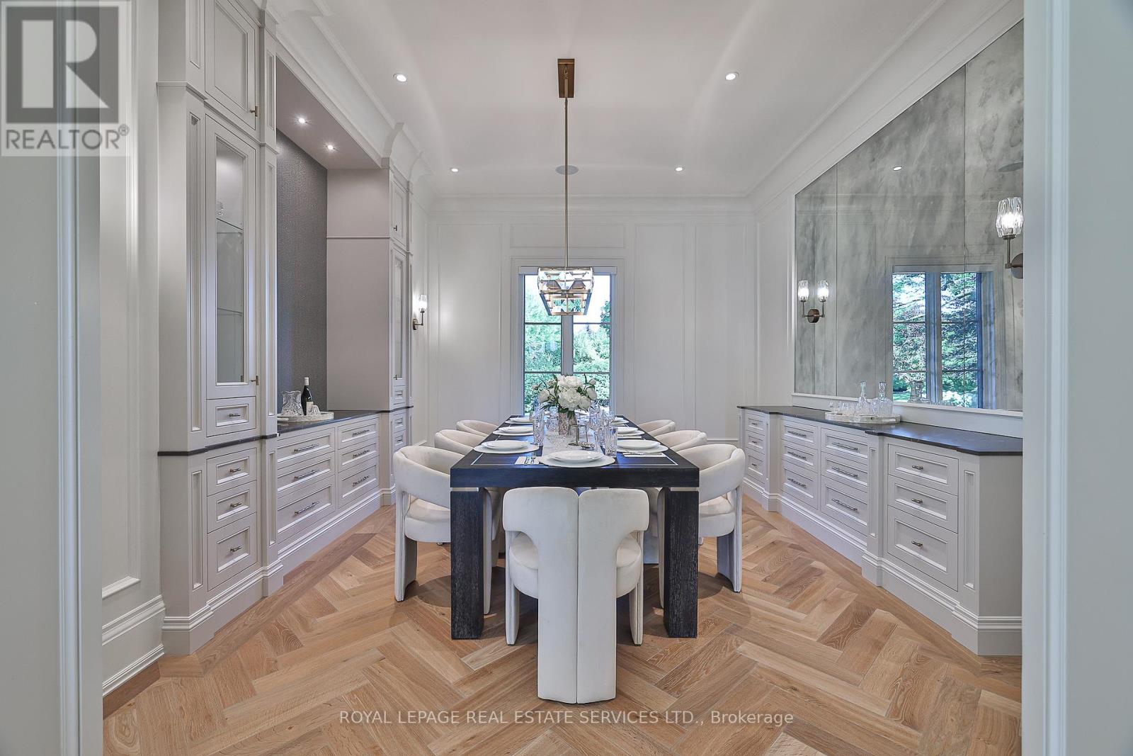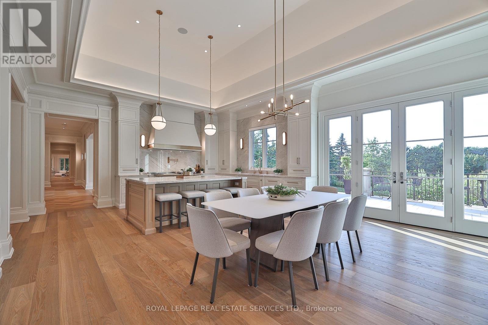 Welcome To Luxury Lifestyle Living At 16 Eversley Hall Fairfield Estates, Set On 2.2 Acres In The Prestigious Enclave Of Fairfield Estates, this Well Designed Raised Bunglalow Offers 10,000 Sq Ft Of Living Space. This Rare Offering Blends Timeless Architecture, European Craftsmanship, And Modern Luxury. From The Moment You Arrive, The Grand Mahogany Entrance And Stately Façade Hint At The Level Of Detail Within. Inside, Soaring 15 Ceilings Create A Sense Of Drama, Enhanced By A Custom One-piece Wrought Iron Staircase, Heated Marble, And Oak Herringbone Floors. Every Space Has Been Designed To Impress. The Chefs Kitchen Is A Showcase Of Elegance And Function, Featuring Taj Mahal Quartzite Counters, A La Cornue Range, Sub-zero And Miele Appliances, A Full Walk-in Pantry, And An Integrated Bar Perfect For Entertaining. The Residence Includes 4 Bedrooms And 8 Bathrooms, All With Spa-quality Finishes Such As Steam Showers, Heated Floors, And Bespoke Millwork. The Lower Level Extends The Living Experience With A Gym, Nanny Suite, State-of-the-art Theatre And Hockey Room, And A Designer Bar That Anchors The Ultimate Space For Gatherings. Outdoor Living Is Redefined With A 5,000 Sq. Ft. Stone Patios Overlooking A Gibsan Infinity Pool With Spa. A Lynx Outdoor Kitchen, 5 Fireplaces, And Snow-melt Systems Ensure Year-round Enjoyment, While Manicured Landscaping Provides Privacy And Beauty In Every Season. For The Automobile Enthusiast, The Radiant-heated Garage Includes Ev Rough-in And Advanced Systems, Supported By A 400-amp Backup Transfer For Complete Peace Of Mind. Every Element Of This Estate Has Been Carefully Curated To Deliver An Unparalleled Lifestyle Of Design, Technology, And Comfort. A True Masterpiece, 16 Eversley Hall Is Not Simply A Home, But A Statement Of Prestige And Refined Living In One Of The Regions Most Exclusive Communities. (id:63285)
