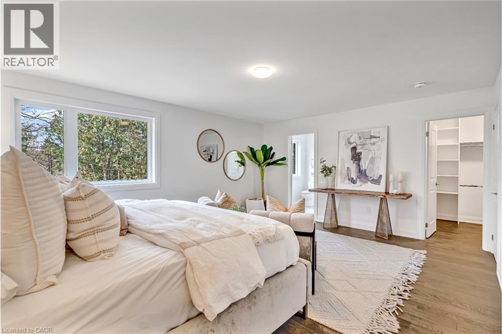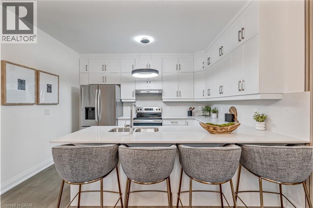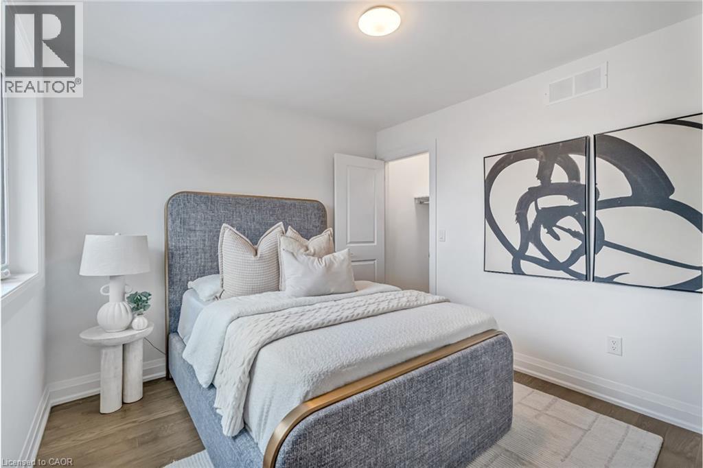 Brand-new executive town home never lived in! This stunning 1,799 sq. ft. home is situated in an exclusive enclave of just nine units, offering privacy and modern luxury. Its sleek West Coast-inspired exterior features a stylish blend of stone, brick, and aluminum faux wood. Enjoy the convenience of a double-car garage plus space for two additional vehicles in the driveway. Inside, 9-foot ceilings and engineered hardwood floors enhance the open-concept main floor, bathed in natural light from large windows and sliding glass doors leading to a private, fenced backyard perfect for entertaining. The designer kitchen is a chefs dream, boasting white shaker-style cabinets with extended uppers, quartz countertops, a stylish backsplash, stainless steel appliances, a large breakfast bar, and a separate pantry. Ideally located just minutes from the QEW, 407, and Burlington GO Station, with shopping, schools, parks, and golf courses nearby. A short drive to Lake Ontario adds to its appeal. Perfect for down sizers, busy executives, or families, this home offers low-maintenance living with a $296.01/month condo fee covering common area upkeep only, including grass cutting and street snow removal. Don't miss this rare opportunity schedule your viewing today! Tarion Warranty! (id:63285)