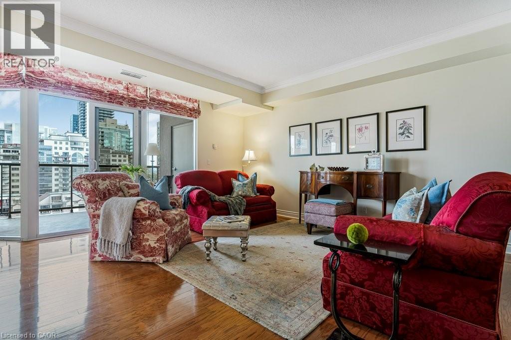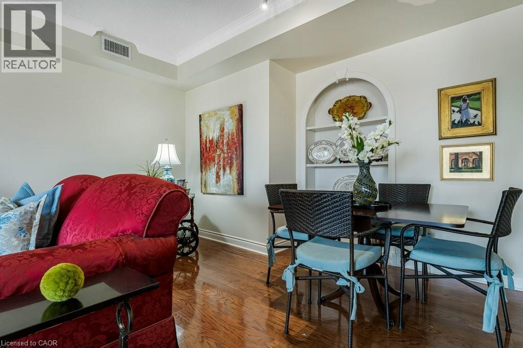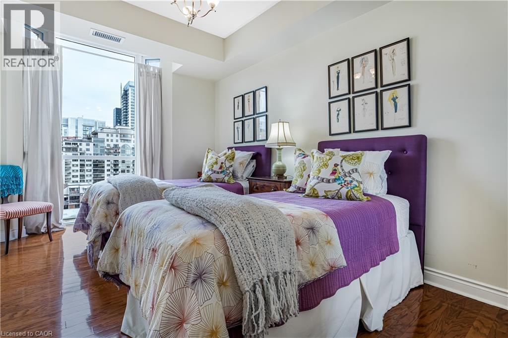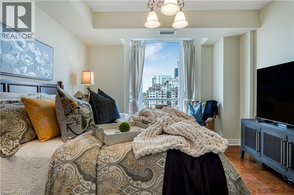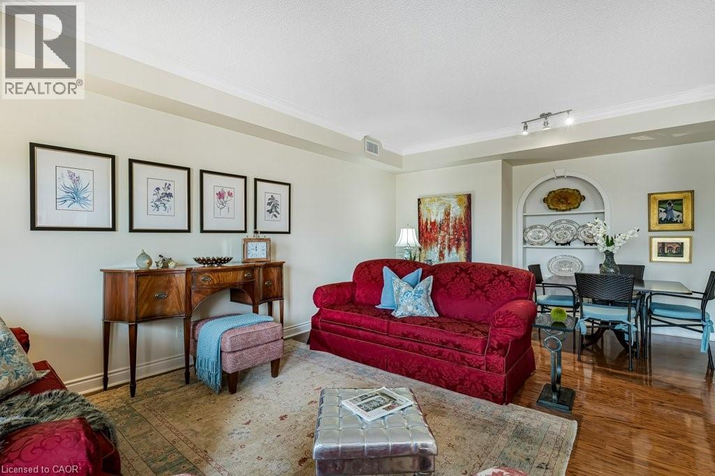 Downtown energy. Lakeside calm. Pure Burlington living. Welcome to Bunton’s Wharf, where open-plan design meets refined elegance in this 2-bedroom, 2-bath condo perfectly balancing luxury, light, and location. A welcoming foyer leads to a bright, airy living space with floor-to-ceiling windows, 9 ft ceilings, and hardwood floors. The kitchen combines function and style with granite countertops, ample cabinetry, a large breakfast bar, and a breakfast nook with partial water views—the perfect morning retreat. The living and dining area opens to a private balcony with sweeping lake and city views. The primary suite features floor-to-ceiling windows, a walk-in closet, and a 4-piece ensuite. The second bedroom is bright and versatile—ideal for guests, a home office, or studio. A second full bathroom, laundry room, and ample storage complete the layout. Includes two underground parking spaces and a locker conveniently located across the hall. Amenities: Rooftop heated pool with panoramic lake views, rooftop patio, party room, two fitness centres (one with a golf simulator), steam room, and concierge service. Steps to Spencer Smith Park, waterfront trails, fine dining, boutique shopping, and the Performing Arts Centre, with quick access to the QEW, 407, and GO Transit. Luxury. Light. Location. Experience Burlington living at its best. (id:63285)