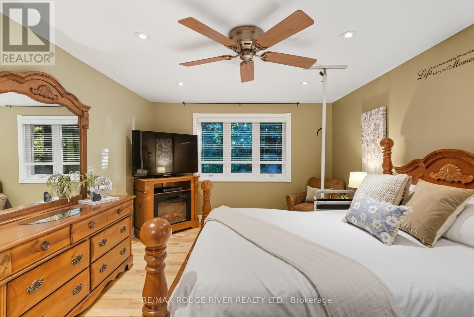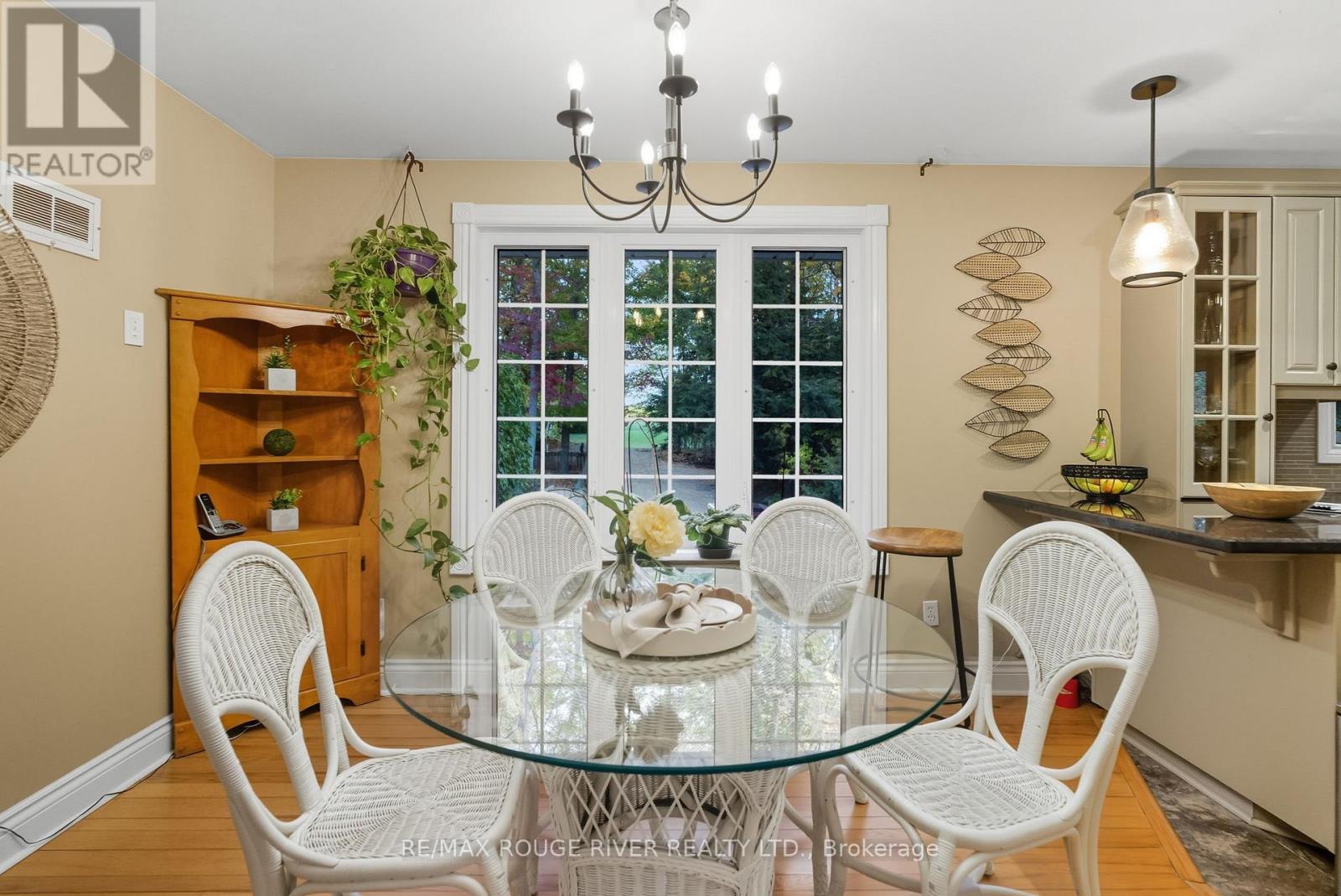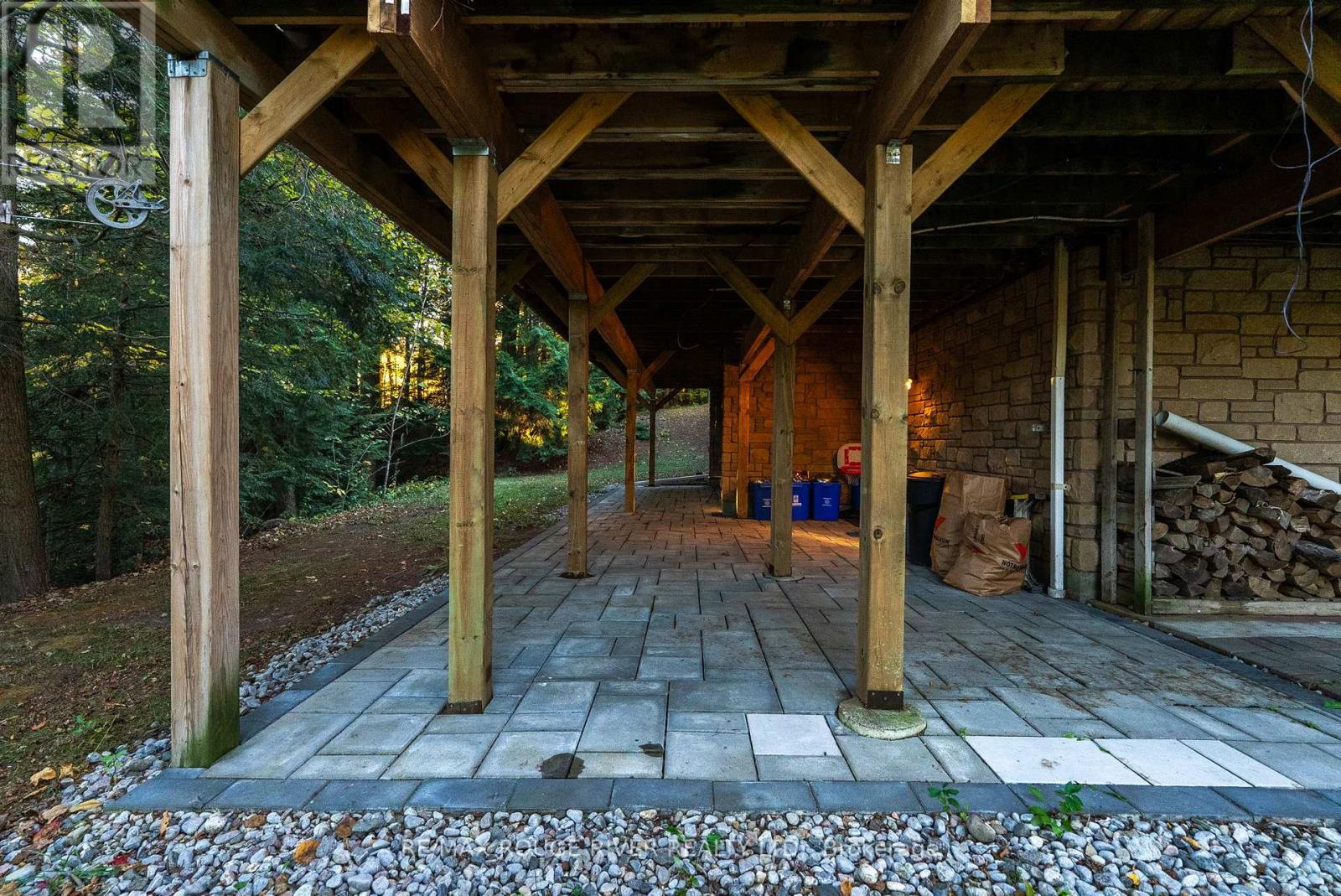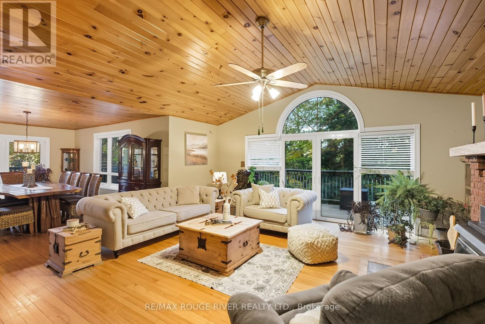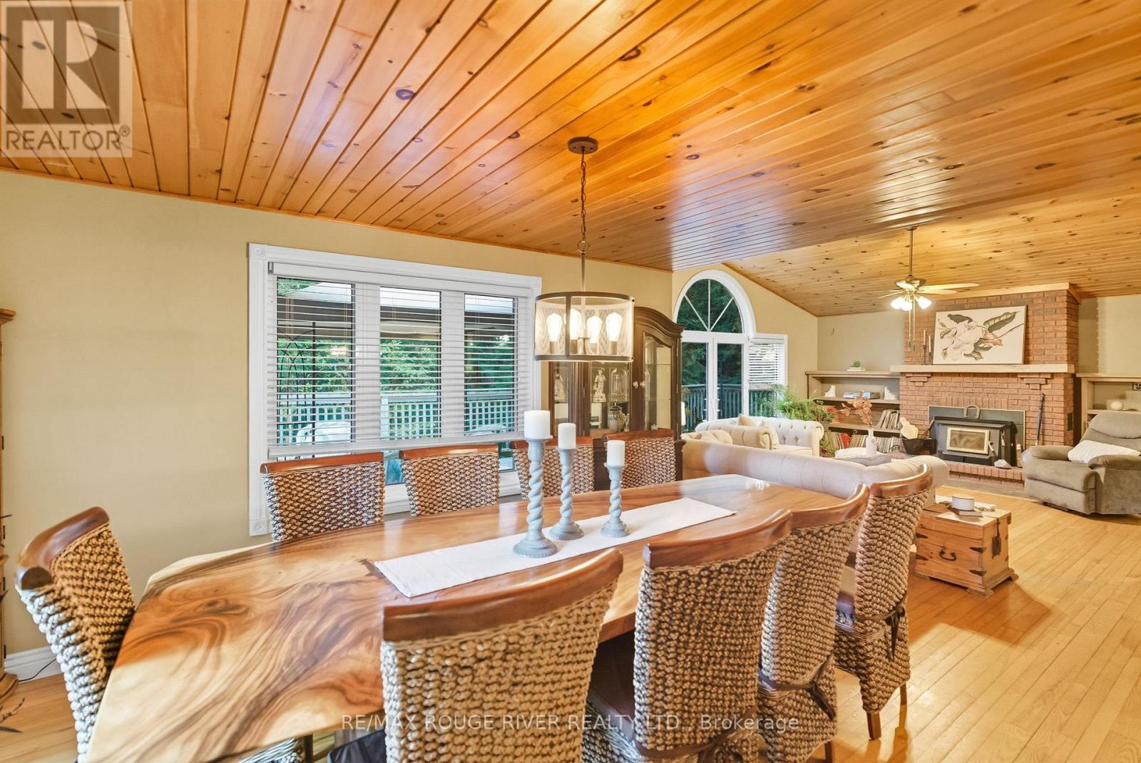 Welcome to your own private 4.69-acre hobby farm retreat! This custom-built bungalow offers an exceptional lifestyle surrounded by mature trees and breathtaking ravine views, an enchanting woodland setting that feels like a true getaway while still close to modern amenities. Step inside through the grand double door entryway to discover an open-concept layout showcasing rich hardwood floors, vaulted pine ceilings, and wall-to-wall windows that flood the home with natural light. The stunning great room features a floor-to-ceiling brick fireplace and a walkout to a large wraparound deck with a hot tub, overlooking total privacy and serene natural beauty. The formal dining room also opens to the deck, creating the perfect flow for indoor-outdoor entertaining. The massive eat-in kitchen is a chef's dream, boasting custom cabinetry, a wall pantry, stainless steel appliances, and pot lights, with a bright breakfast area framed by large windows and scenic views. The primary bedroom offers a semi-ensuite bath, walk-in closet, and warm hardwood flooring, while the second bedroom provides ample space and sunlight. The lower level extends the living space with a bright family room, additional bedrooms, a full bathroom and a walkout to a wraparound patio, ideal for guests or multi-generational living. Equipped with a UV water treatment system, ensuring clean, safe water. Outside, discover a nature lover's paradise, walking trails, a maple syrup sugar shack with 40 maple trees, a fenced dog run, and a massive garden ready for your green thumb. You'll find apple, pear, and cherry trees, strawberries, raspberries, and wine grapes, and perennials that return year after year, attracting local wildlife and offering an ever-changing landscape through the seasons. Whether you're relaxing in the hot tub, making your own maple syrup, or simply soaking in the peaceful sounds of nature, this idyllic hobby farm delivers the perfect blend of comfort, character, and countryside charm! (id:63285)