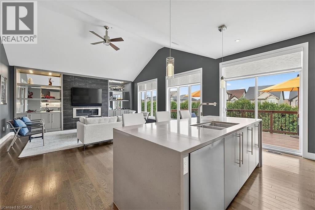 Elegance and sophistication await in this one of a kind “Bristol” model by Charleston Homes in the Noble Ridge community of Rockwood. With $300,000 of upgrades, this home offers over 3,300 square feet of finished space and was designed to meet the expectations of the most discerning homebuyers. At the heart of this home is the showstopping kitchen featuring upgraded Barzotti cabinetry, Silestone Counters, an oversized island with double waterfall design and premium Miele appliances including a convection wall oven, speed oven, warming drawer and 36” gas range. The open-concept great room offers soaring cathedral ceilings, custom built-in cabinets, linear gas fireplace and integrated 5.2 surround sound system. The main level is complete with a separate office space, dining room, powder room and mudroom with laundry. The primary retreat includes an oversize walk-in closet and spa-like five-piece ensuite with deep soaker tub, twin floating vanities and a frameless glass shower. The second bedroom also features a 4 piece ensuite bath. The fully finished walkout basement is complete with a second great room, an additional bedroom, wet bar and a 3 piece bath. The garage is finished with the same attention to detail including epoxy floors, wall panel organizer system plus a premium steel workbench and cabinets. Additional upgraded finishes include premium porcelain and hardwood flooring, upgraded trim and light fixtures and “Control 4” whole home automation including motorized blinds throughout. With too many additional features to list, you need to view this home to learn all it has to offer. (id:63285)