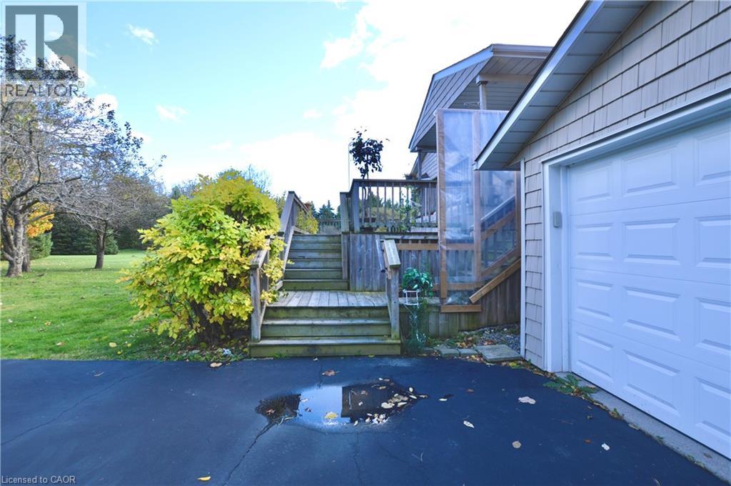 Prime Location & Endless Possibilities - Discover the perfect blend of privacy, space, and convenience with this charming 3-bedroom raised bungalow, nestled on nearly 5 acres of peaceful, picture-perfect countryside — just 1.5 km north of Dundas Street! Enjoy the tranquillity of rural living without sacrificing proximity to city amenities. Set back approximately 350 feet from the road and surrounded by mature trees, the home features exceptional privacy and a quiet retreat from everyday noise. Inside, the open-concept layout is bright and inviting, featuring great flow and abundant natural light — the perfect canvas to personalize and make your own. The bi-level front deck welcomes guests in style, while the primary bedroom’s private walk-out deck is ideal for morning coffee or evening relaxation. The partially finished lower level is drywalled and sub-floored, featuring a gas fireplace and above-grade, chest-level windows that bathe the space in natural light. It’s a blank slate ready for your imagination — whether you envision a family recreation area, guest suite, home office, or studio. A detached double garage with automatic doors and an additional storage shed provides ample space for vehicles, tools, and hobbies. The kitchen includes built-in appliances (range, oven, and dishwasher), while essential systems — drilled well, UV water filtration, and owned water softener — ensure comfortable, self-sufficient country living. Whether you’re ready to move in, expand on the existing footprint, or build your dream home from the ground up, this property has endless potential. Don’t miss this rare opportunity — a peaceful country retreat just minutes from everything! (id:63285)