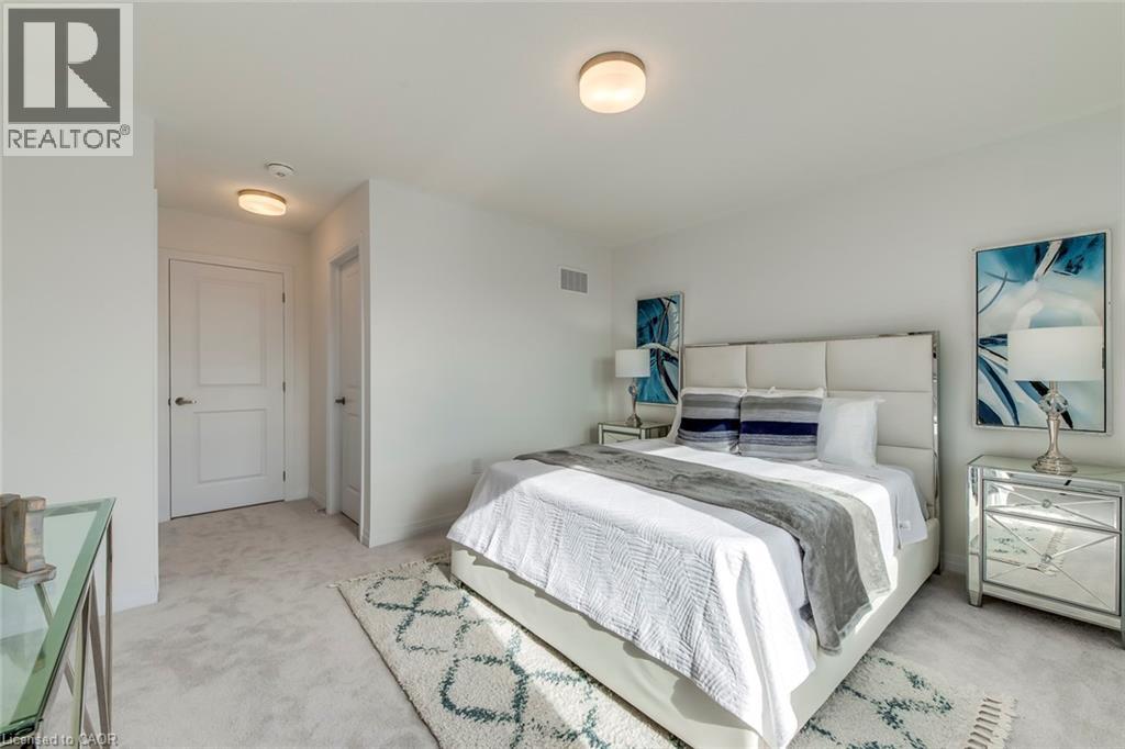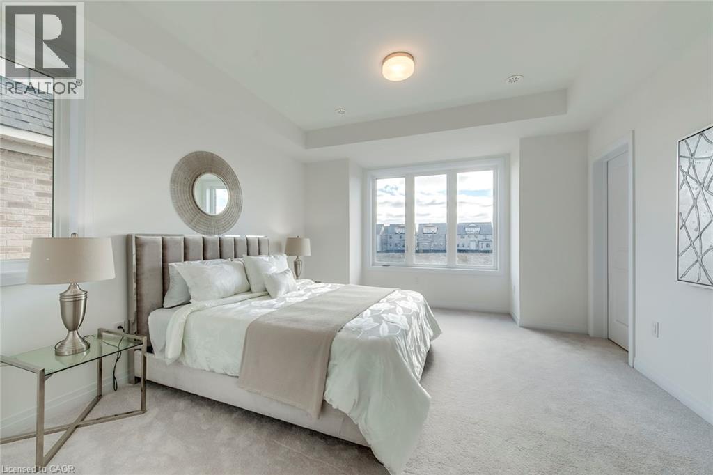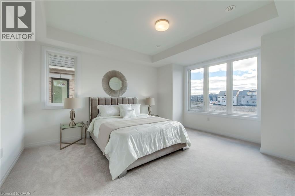 Bedroom featuring a raised ceiling, light colored carpet, and baseboards
