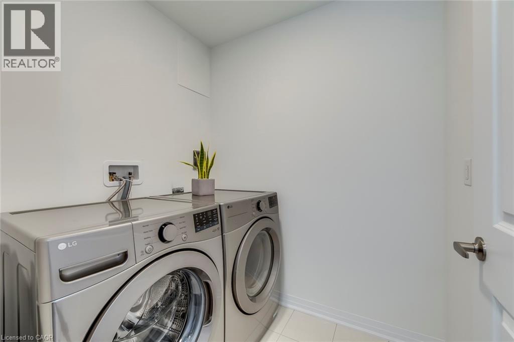 Washroom with washer and clothes dryer, light tile patterned floors, and baseboards