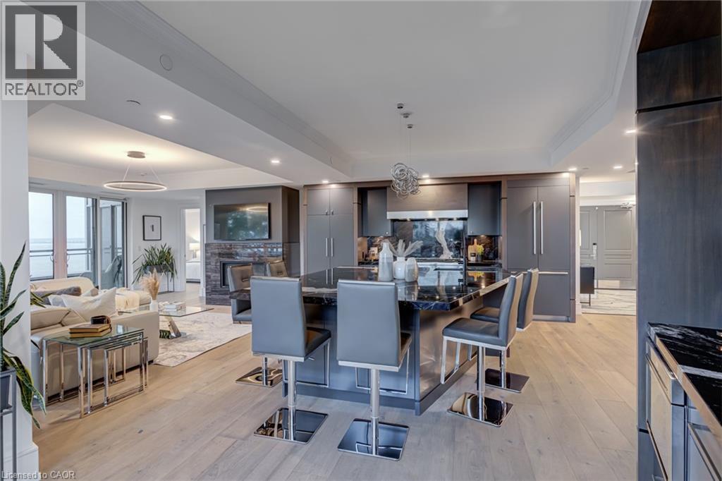Luxury Waterfront Living in the Heart of Downtown Burlington at the prestigious Bridgewater Residences — where timeless elegance meets lakeside tranquility. Spanning 2,200 square feet of refined living space, plus an expansive 725+ square foot private wrap-around terrace, this southeast-facing corner suite offers breathtaking, unobstructed views of Lake Ontario. Designed with meticulous attention to detail, this 2-bedroom plus den, 3-bathroom residence is rich with luxury upgrades and sophisticated design elements. Soaring floor-to-ceiling windows flood the space with natural light, while the open-concept layout features a gas fireplace and a spectacular gourmet kitchen equipped with premium Thermador appliances, a generous granite island, and custom cabinetry — ideal for both everyday living and entertaining. The hotel-inspired primary suite is a true retreat, complete with terrace access, panoramic lake views, a spacious walk-in closet, and a spa-like ensuite featuring an oversized glass shower and elegant finishes. A second bedroom with ensuite and a separate den/home office (easily adaptable as a third bedroom) ensure flexibility and privacy for guests or family. A dedicated laundry room and a stylish powder room round out the suite’s thoughtful layout. Step outside to your private terrace and take in the serenity of waterfront living — the perfect backdrop for morning coffee, summer dining, or evening relaxation. As a Bridgewater resident, enjoy access to resort-style amenities, including a rooftop terrace, party lounge, fitness centre, piano room, and VIP privileges at The Pearle Hotel & Spa, featuring a second gym and a luxurious indoor pool. This rare offering also includes two premium accessible parking spaces next to the elevator, as well as a private storage locker. Experience the best of Downtown Burlington — just steps to the Waterfront Trail, Spencer Smith Park, the Pier, and a vibrant mix of boutique shopping, fine dining, and cultural attractions. (id:63285)