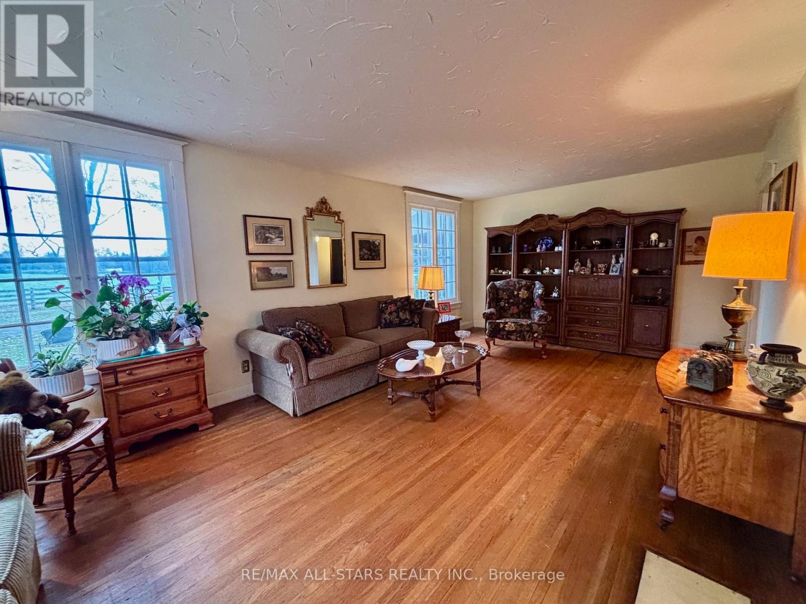 This c.1850, 2800 square foot century home on 98 beautiful acres, first time available for sale since 1966. The home is built in the Georgian style, with gorgeous large original rippled glass windows allowing so much natural light. All principal rooms are exceptionally large. Living room, dining room and upper hallway feature original hardwood floors and the three bedrooms feature original wide plank pine flooring. The enormous kitchen/family room boasts a large wood burning fireplace. A main floor utility room has space for a washer and dryer, freezer and a large space for folding clothing. The home has numerous closets and storage cupboards, including an illuminated built in cabinet adjacent to the dining room. The downstairs features soaring 10ft ceilings while the upper level has generous 8ft ceilings. The canopy of trees around the house, mostly sugar maples, provide shade and beauty.The home has a newer propane furnace and tank, 2023. Heated tack room/feed room in the 10 stall barn. Approximately 40 acres of fenced horse pasture. Each pasture has water hydrants for easy watering as well as GFI outlets for tank heaters. Pastures are maintained multiple times per year to keep weeds down and grass plentiful. The remaining fields have been well maintained by crop farming. Acres and acres to walk and enjoy the peace and quiet of this gorgeous century farm. (id:63285)