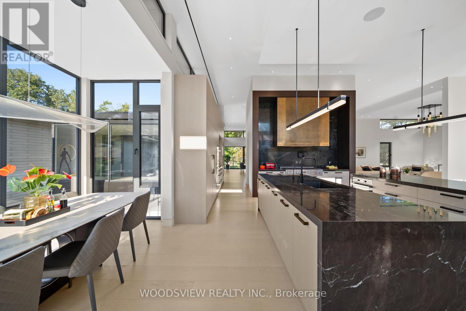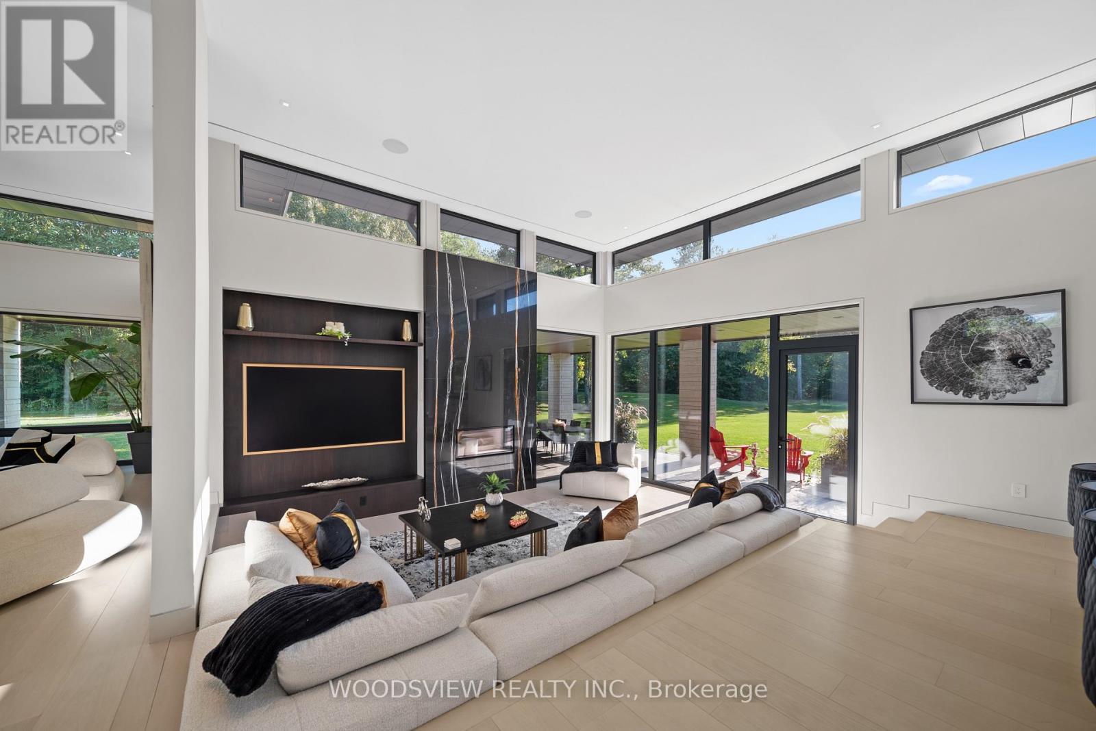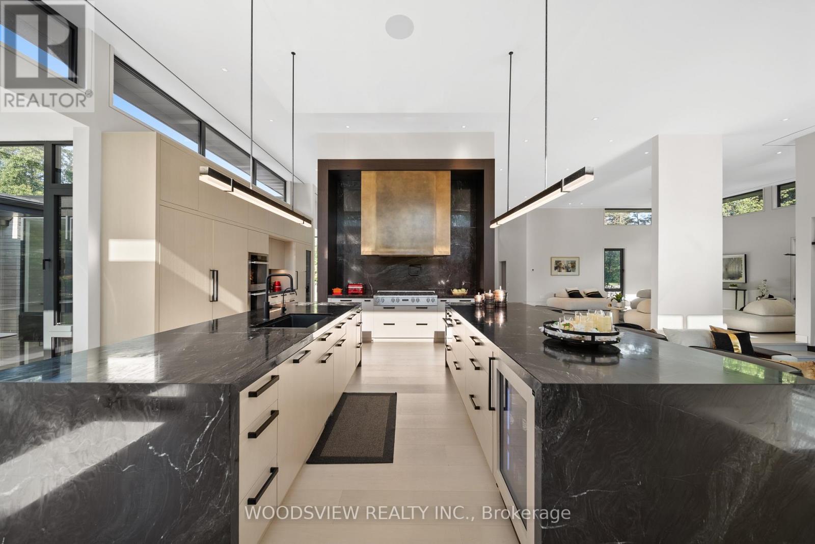 Step into your private oasis - where design becomes art and every detail tells a story. Set in one of York Region's most coveted neighbourhoods, this is more than a home - it's a statement. A bold fusion of architecture, elegance, and imagination, crafted to inspire.As you approach, a fully equipped carriage house and rolling landscapes set the tone. The winding drive leads to tranquility - where serenity and design converge in perfect harmony.The striking façade of stone and aluminum, and the weight of a solid door, opens to a grand interior of heated floors, bespoke millwork, and formal rooms that blend timeless elegance and the stillness of a perfectly balanced space. Every surface and finish has been refined to one standard: perfection without pretence. A sunken living room invites intimate connection, anchored by a 13-foot marble fireplace and floor-to-ceiling windows frame sweeping panoramic views, flooding the rooms with natural light.The kitchen, equipped with a full Miele suite, centres around a handcrafted brass-accented hood - a symbol of quiet strength and precision. The home's rhythm flows effortlessly: private yet open, contemporary yet warm. Its 30-foot floating skeleton staircase - a one-of-one architectural sculpture - connects every level with breathtaking grace.The primary retreat is a sanctuary of calm, featuring a fireplace and gallery-style walk-in closet with custom millwork. The lower level, accessible by private elevator, is devoted to leisure - complete with a bar, media room, climate-controlled wine cellar, fitness studio, and guest suite. Outdoors, an expansive covered terrace with integrated sound overlooks eight acres of sculpted landscape framed by towering trees and complete privacy. This is more than a home; it is a living showcase of achievement, a reflection of everything you've built and everything you've become (id:63285)