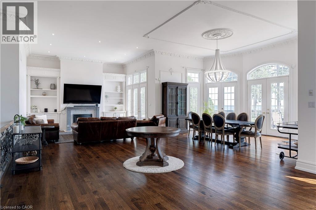 Welcome to 4410 Lakeshore Road, a stunning 1.2-acre lakefront estate in Burlington’s sought-after Shoreacres neighbourhood. This custom-built bungalow offers 5 bedrooms (3 on the main level, 2 on the lower level) and 4 bathrooms, with 4,365 sq. ft. of living space on the main floor alone. Inside, you'll find 12-foot ceilings, detailed crown mouldings, and an elegant yet inviting layout. The expansive great room and chef’s kitchen are perfect for entertaining, while the main-floor primary suite provides stunning lake views. The walk-up lower level features a second kitchen, spacious recreation room, and additional bedrooms—ideal for guests or multigenerational living. Step outside to your private oasis: a sparkling inground pool, lush landscaping, and direct access to Lake Ontario, perfect for serene mornings and captivating sunsets. With a detached 2-car garage and parking for 30+, this property offers the ultimate in both luxury and practicality. Located near top-rated schools, parks, and upscale amenities, this exclusive estate combines privacy with convenience in one of Burlington's finest communities. (id:63285)