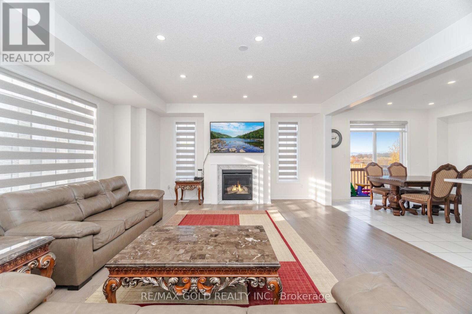 Welcome to 2 Madawaska Rd, Caledon - an exceptional, one-of-a-kind corner cross-ventilated residence that perfectly blends elegance, comfort, and modern design! Situated on a premium irregular corner lot backing onto serene green space, this stunning 4-bedroom, 5-bathroom home offers a lifestyle of sophistication and tranquility. From the moment you step inside, you'll be greeted by an abundance of natural light and a thoughtfully designed open-concept layout that radiates warmth and style. The main floor boasts 9-ft ceilings and gleaming hardwood floors that flow seamlessly through the dining and great rooms, creating an inviting atmosphere for family living & entertaining. The spacious great room is centered around a charming fireplace, while the dedicated main-floor den provides the ideal space for a home office or study. The chef-inspired kitchen is a true showpiece, featuring high-end stainless steel appliances, elegant cabinetry, and a generous island perfect for casual dining and gatherings. Every detail has been meticulously designed to balance functionality and luxury. Upstairs, you'll find four large bedrooms, each with its own ensuite bathroom-a rare and highly desirable feature. The primary suite is a luxurious retreat with a large walk-in closet and a spa-like ensuite showcasing a freestanding soaking tub, glass-enclosed shower, & modern finishes that evoke a sense of serenity & relaxation. The additional bedrooms are bright and spacious, offering ample closet space and large windows that fill each room with natural light. The exterior impresses with its elegant architecture and professionally landscaped surroundings, while the backyard's green space backdrop ensures privacy and picturesque views year-round. Recently, the seller has upgraded the main floor with modern pot lights, replacing the standard light fixtures for a sleek, contemporary look. Experience luxury, functionality, and timeless elegance. NO SIDEWALK ADDITIONAL PARKING SPACES IS A BONUS (id:63285)