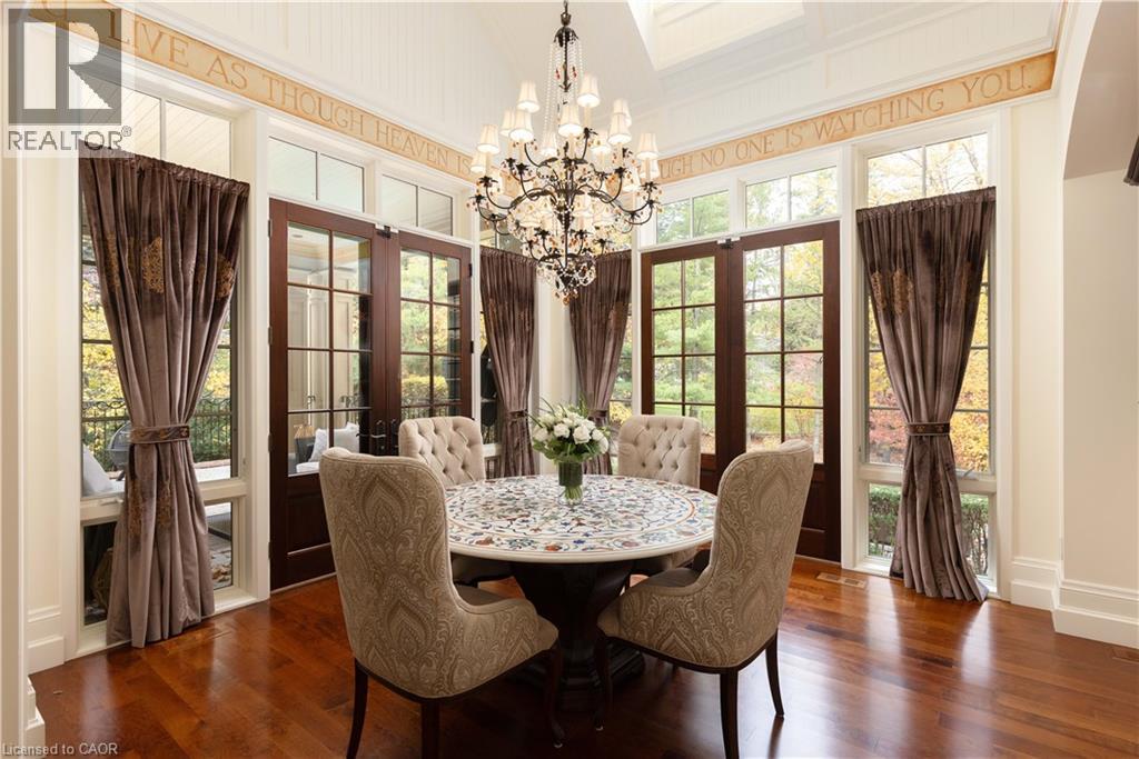 An architectural masterpiece by renowned Gren Weis, this exceptional residence offers over 10,000 sq. ft. of luxurious living space on more than ½ an acre in one of Oakville’s most desirable lake-influenced neighbourhoods. Showcasing soaring ceilings, extensive millwork, and superb craftsmanship, the home features spacious, elegant rooms and a seamless flow for entertaining. All bedrooms include ensuite baths, while the lower level impresses with a wine cellar and theatre. Outside, enjoy covered terraces, a built-in outdoor kitchen, luxury cabana, mature gardens, and a stream with bridge surrounded by landscape lighting. A classically inspired front fountain and spectacular landscaping enhance the property’s distinguished presence on an important street. Close to top private and public schools, this private estate blends timeless design, quality, and sophistication in a truly remarkable setting. Luxury Certified. (id:63285)