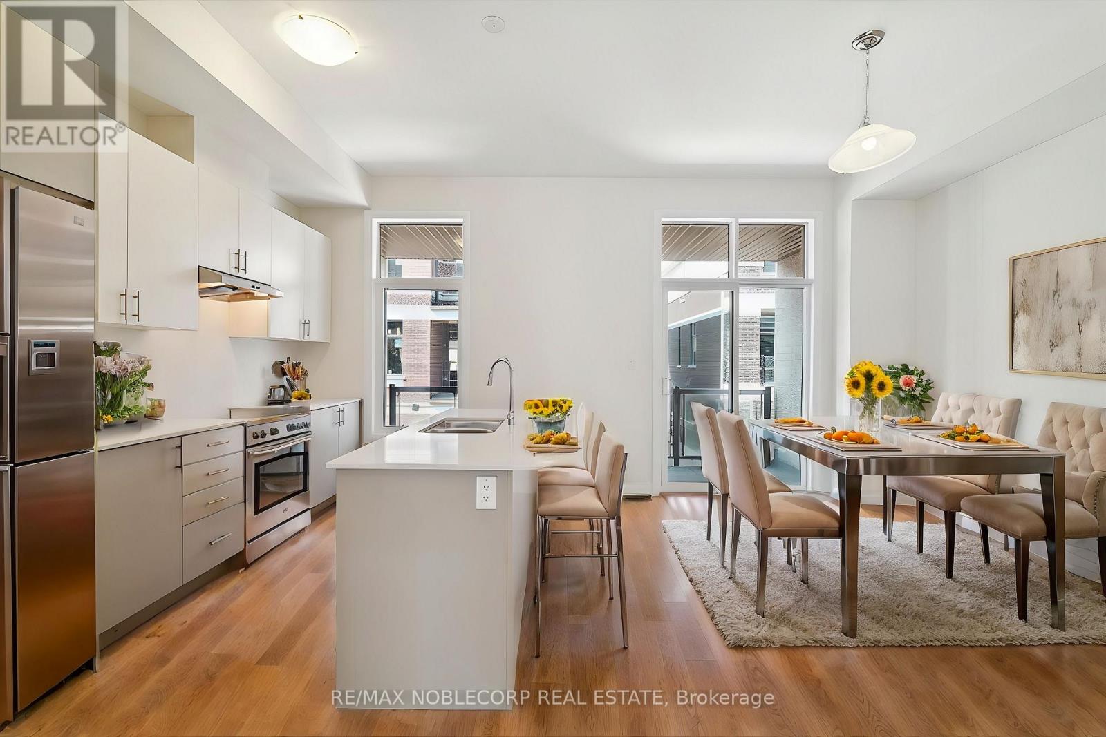 Executive freehold 3-bedroom + den, 3-bath townhouse in Ivylea. Elegant and well-kept executive townhouse in the sought-after Ivylea community. This bright 3-storey home offers three bedrooms plus a versatile den that can serve as a home office or be converted to a fourth bedroom, along with an oversized double garage. The open-concept main level features 10-foot ceilings, hardwood floors, an oak staircase, and a designer kitchen with quartz countertops, centre island, and walkout to the balcony. The primary retreat includes a spa-style ensuite with a freestanding soaker tub, separate glass shower, and a large walk-in closet. Prime location at Leslie Street and 19th Avenue, minutes to Highways 404 and 407, transit, parks, top-rated schools, shopping including Costco and Home Depot, restaurants, and more. Move-in ready with modern finishes. (id:63285)