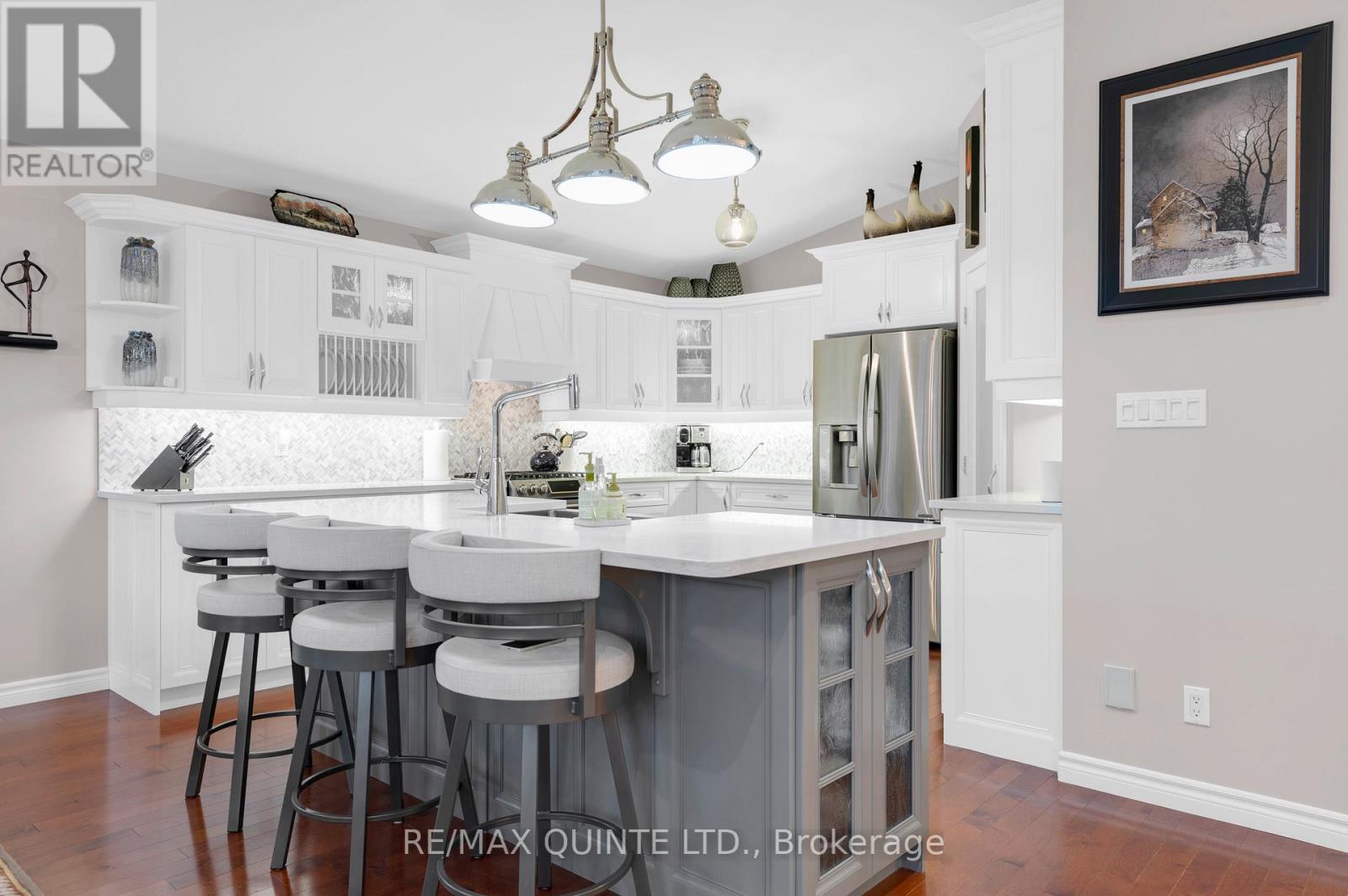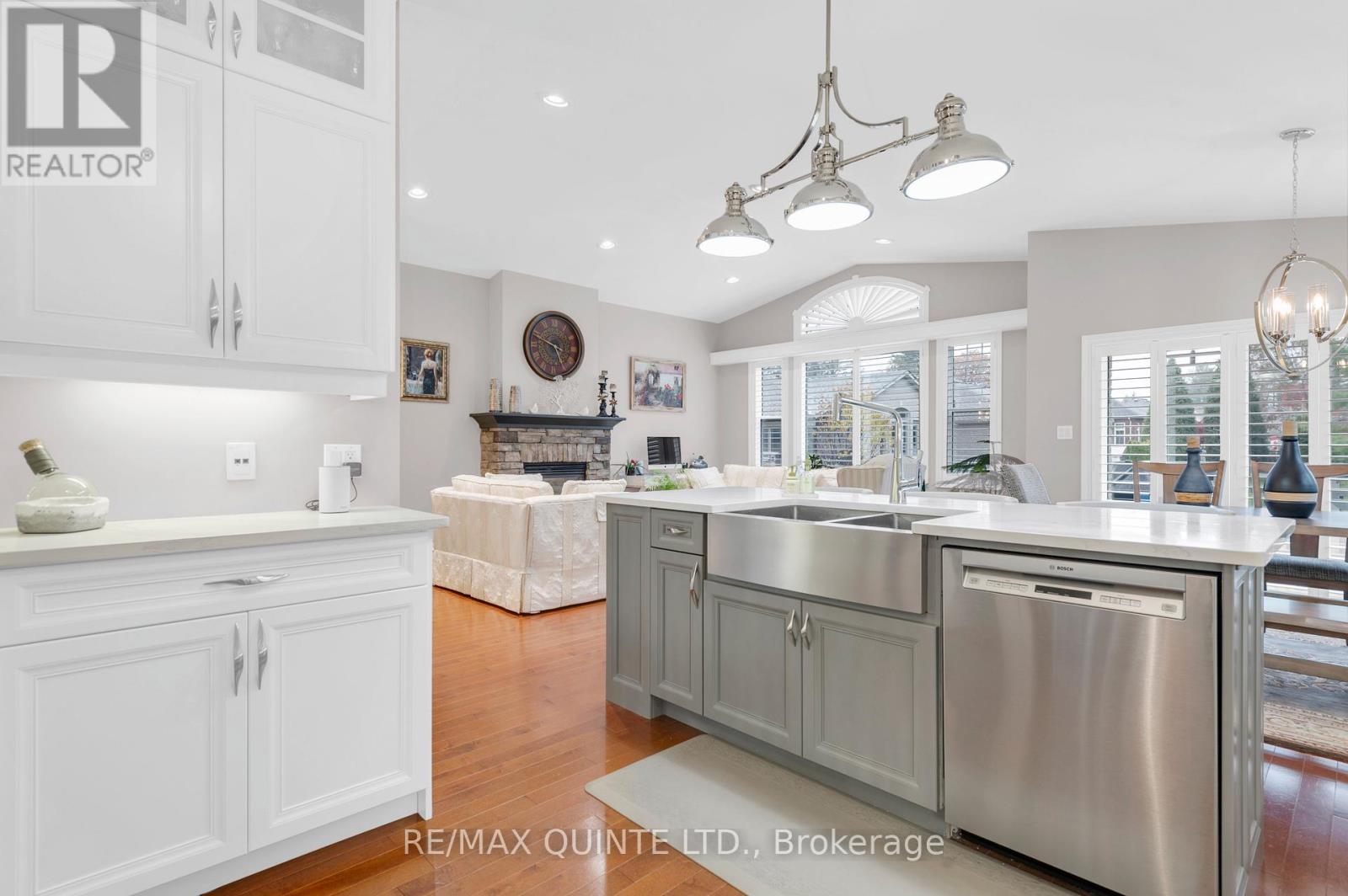 Welcome to this stunning R2000 bungalow, nestled in a serene cul-de-sac within Brighton's highly sought-after Forest Estates, just moments away from the picturesque Presqu'ile Bay. This immaculate home features a spacious driveway that provides ample parking, stone walkways, and a charming patio, all framed by beautifully landscaped grounds. The location of this property offers a peaceful and tranquil environment, perfect for those who appreciate nature. Step inside to discover an inviting, open-concept layout that seamlessly connects a large, thoughtfully designed, and updated kitchen, complete with a pantry, tasteful backsplash, and carefully chosen light fixtures, to the bright and airy dining and living areas. You'll appreciate the gorgeous flooring, vaulted ceilings, and a cozy gas fireplace, creating a warm and welcoming atmosphere. An abundance of windows floods the space with natural light, enhancing the home's inviting charm. The dining and living areas open to a lovely back patio, perfect for enjoying outdoor living. The spacious primary suite features a walk-in closet and an ensuite bathroom, providing a serene retreat. A versatile main floor den can serve as an office or a guest bedroom, while the conveniently located main bathroom ensures comfort for visitors. The bright lower level offers a cozy ambiance, featuring a sizable third bedroom, a three-piece bathroom, and a large family room complete with a sitting area, ideal for gatherings. Storage will never be an issue, thanks to a separate utility room and a generous storage/workshop area to accommodate all your needs. This home has been tastefully updated and decorated throughout, making it truly captivating. Don't miss the opportunity to fall in love with this beautiful sanctuary-you deserve to live in a place that feels like home. Come for a visit and stay awhile; this could be the perfect place you've been searching for! (id:63285)