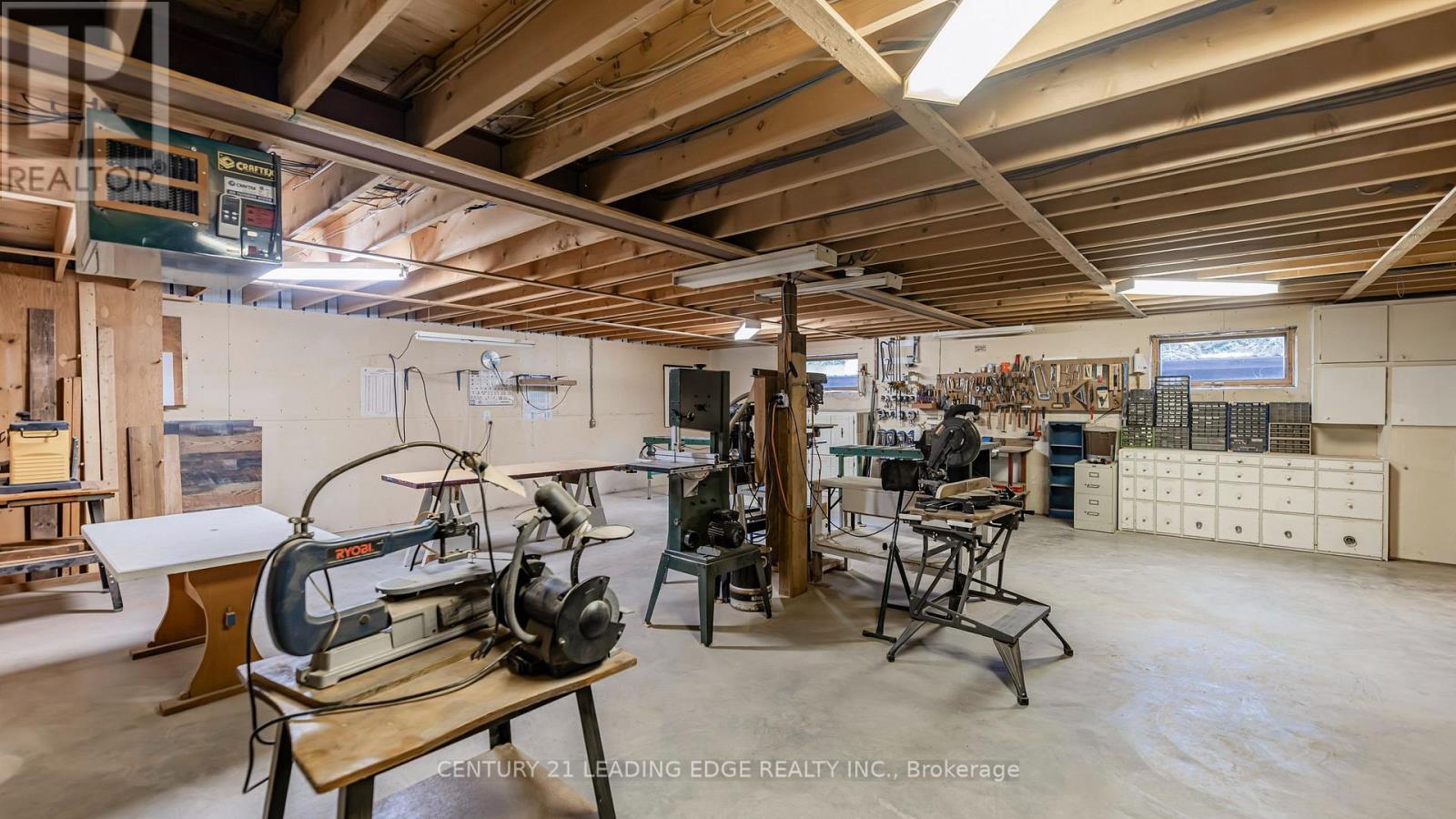 Lovely, private, countryside setting, close to all the conveniences that Uxbridge has to offer.. This 3 bedroom raised bungalow is located on just over 25 acres, with stunning vistas of nature and wildlife. The kitchen has a gorgeous view of the trees, with lots of cupboards and counter space. The living room features a 13 foot cathedral ceiling, and the entire main floor is adorned with tongue and groove ceiling. For the hobbyist/tradesperson there is a massive workshop on the lower level, plus a separate 3 level workshop with a roll up door and large door access to the lower level from the rear of the building. The room over the garage is set up as a games room with a 12' regulation size billiard table. This room is not heated, but there is a propane line under that can be used to add a gas fireplace. Windows on main floor all replaced in 2023 approx $56,000. New generator in 2022. For accessibility, doors are all 3' wide on the main floor except for the pantry off the kitchen, and there is an elevator located just inside the door from the garage to take you from the lower to the main level. (id:63285)