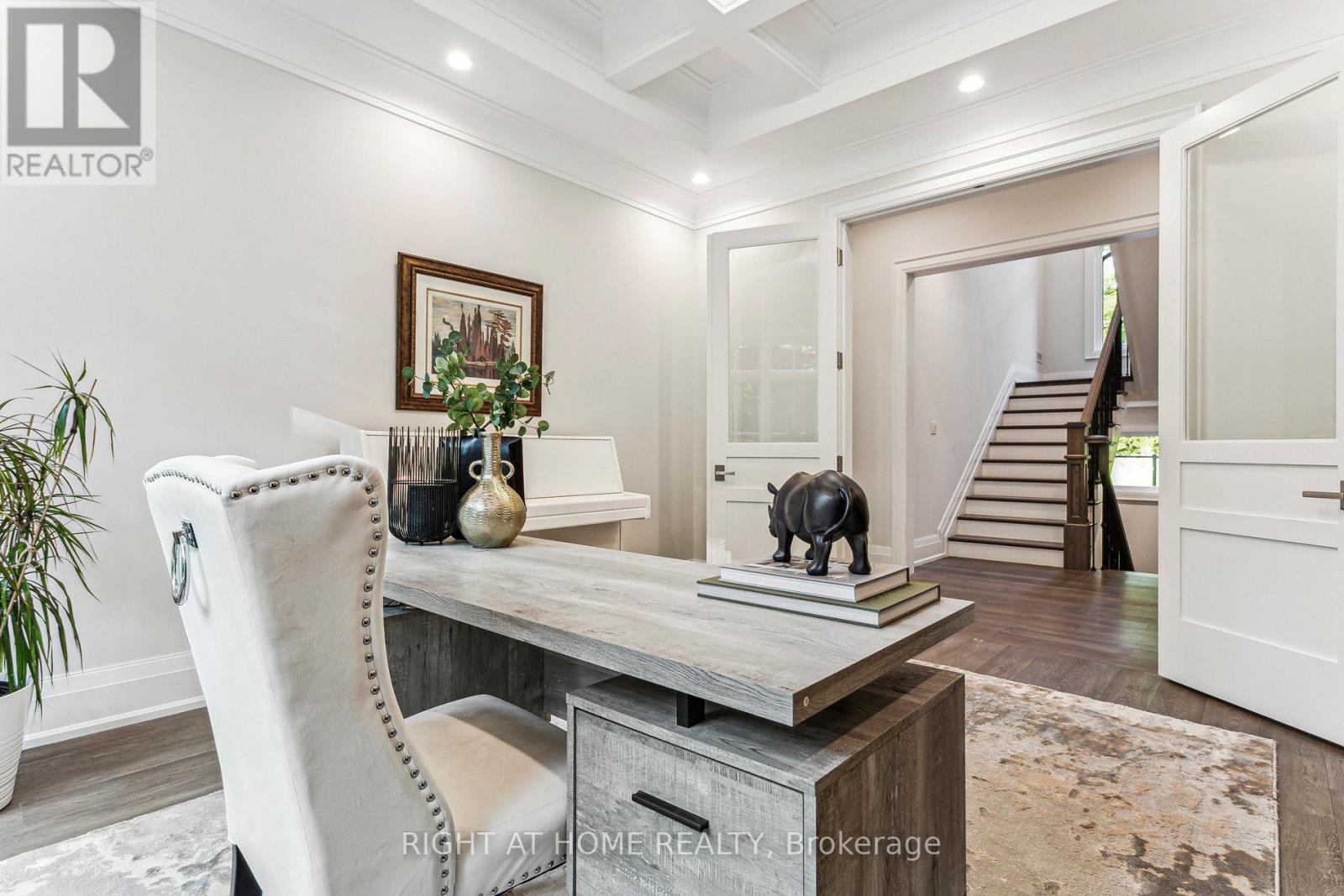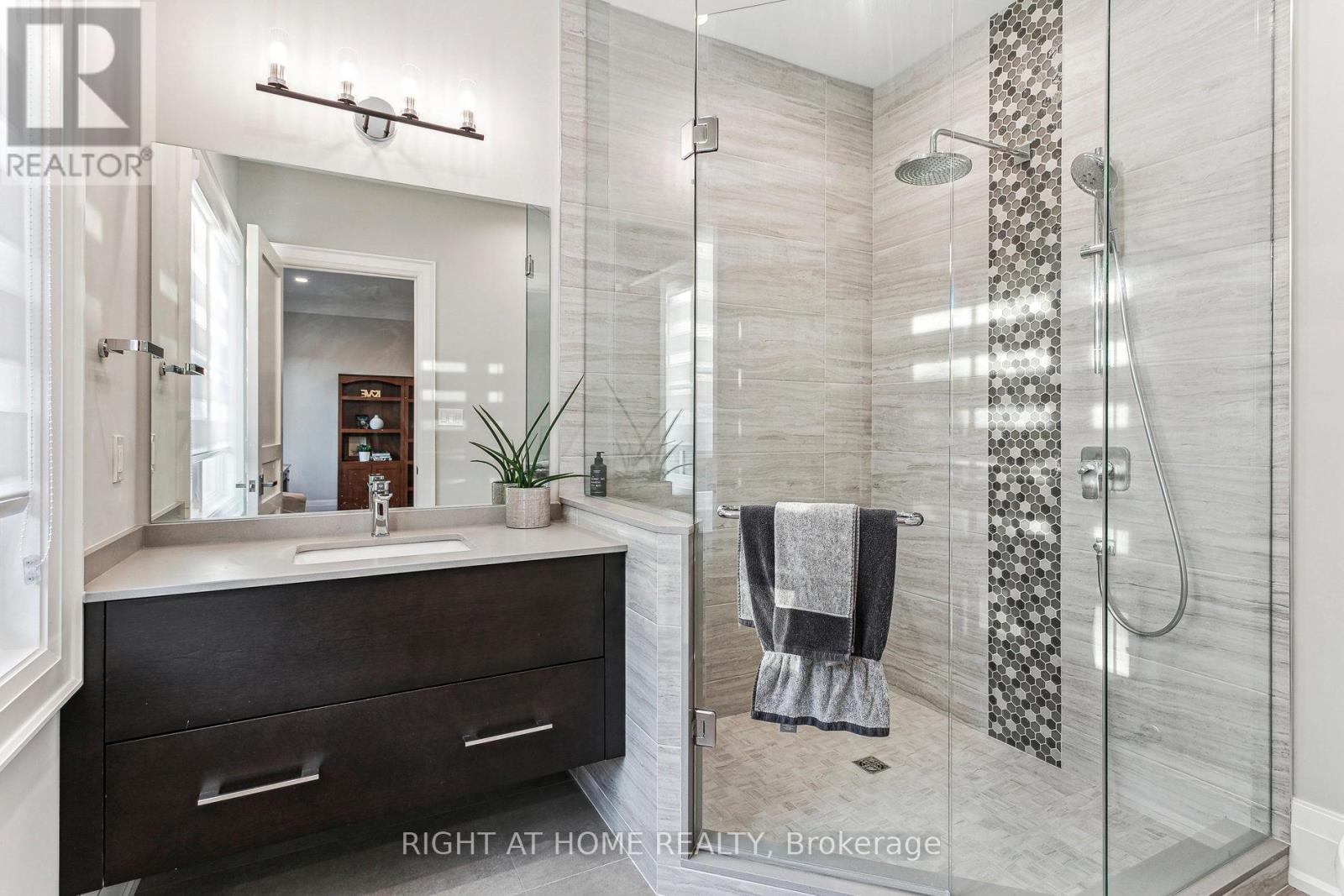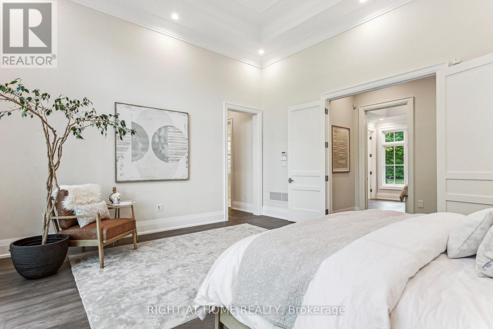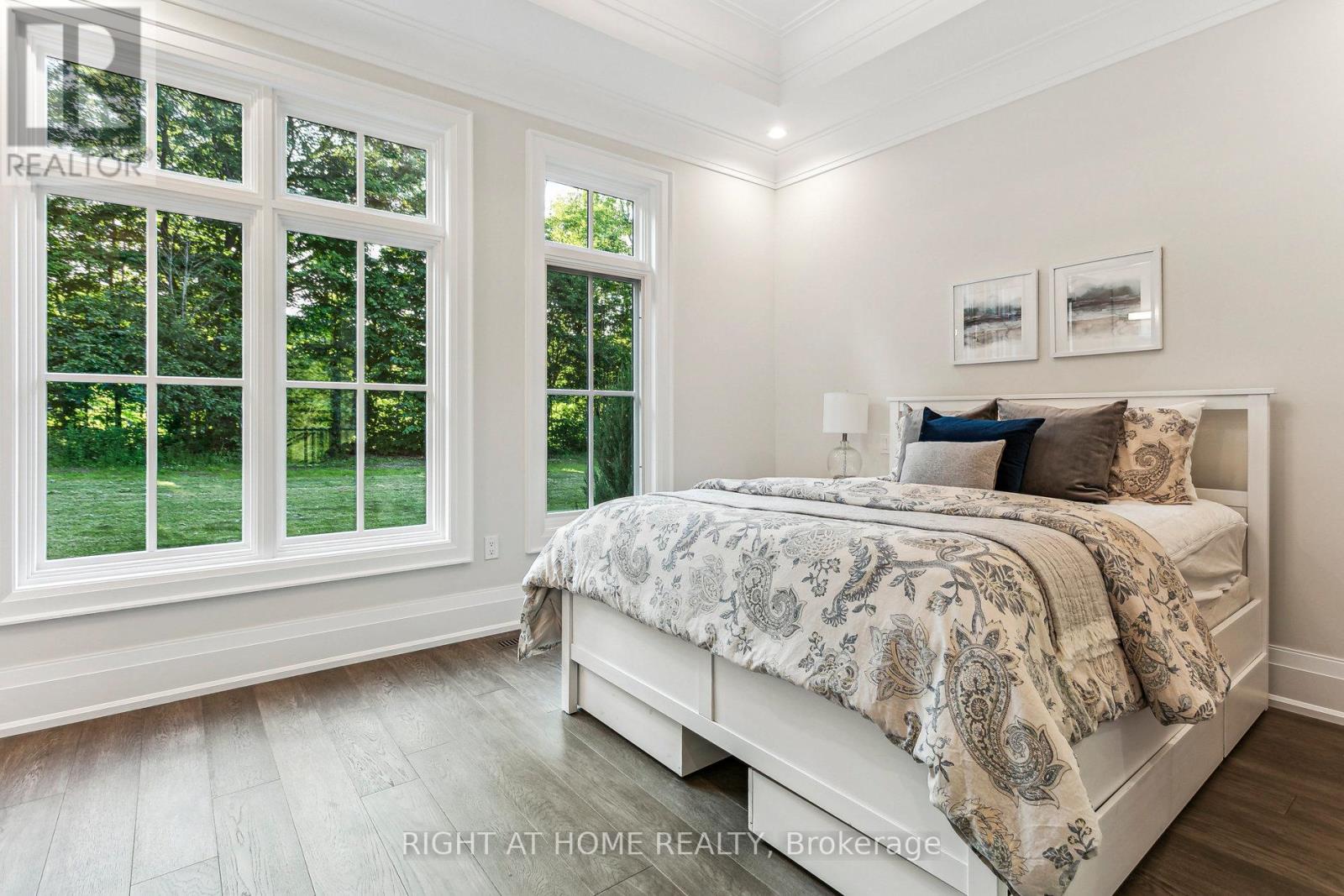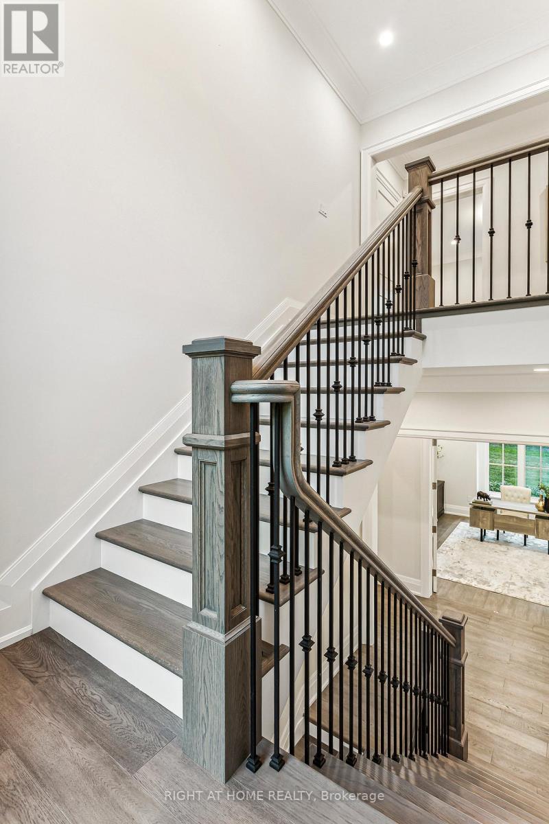 Set against the breathtaking backdrop of Mt. Nemo, this custom-built estate showcases the ultimate balance of luxury, privacy, and natural beauty. Perfectly situated at the end of a quiet cul-de-sac, this home offers exceptional privacy on over 2 private acres. This 6,400 sq.ft home, built in 2019, features 5 spacious bedrooms & 5 elegant bathrooms. A bright 3,400sqft walk-out lower level expands the home's footprint, offering incredible potential for customized living or entertaining space! A grand centre-hall entrance opens to a cathedral-height great room w/ 22ft ceilings, a porcelain-slab fireplace wall, wood beams, and floor-to-ceiling windows that fill the space with natural light. The main kitchen is a chef's dream, complete w/ a large island, granite counters, and high-end appliances, complemented by a secondary kitchen with a 6-burner Wolf gas range and walk-in pantry- ideal for entertaining. The formal dining room connects through a butler's servery with pocket doors, while hardwood floors flow throughout and radiant-heated flooring warms all tiled areas. A 3-car garage offers interior access to both levels. Smart-home lighting, climate control, and an 8-camera security system extend throughout the home for ultimate comfort and safety. The main-level primary suite, with soaring 14ft ceilings, opens to the rear porch and treeline views & includes 2 walk-in closets w/ a built-in vanity & a luxurious 5-pc ensuite. 2 staircases then lead to spacious bedrooms and a loft with glass railing overlooking the great room & forest views. A convenient storage room is also flexibly roughed in for an additional bathroom. Outdoors, venue-style entertaining is effortless with a covered porch and uninterrupted treetop views.Steps from Lowville Golf Course and major highways 407,QEW & 403 just mins away, this property blends peaceful country living with city convenience for a perfect mix of luxury, privacy, and accessibility in one of Burlington's most prestigious enclaves. (id:63285)