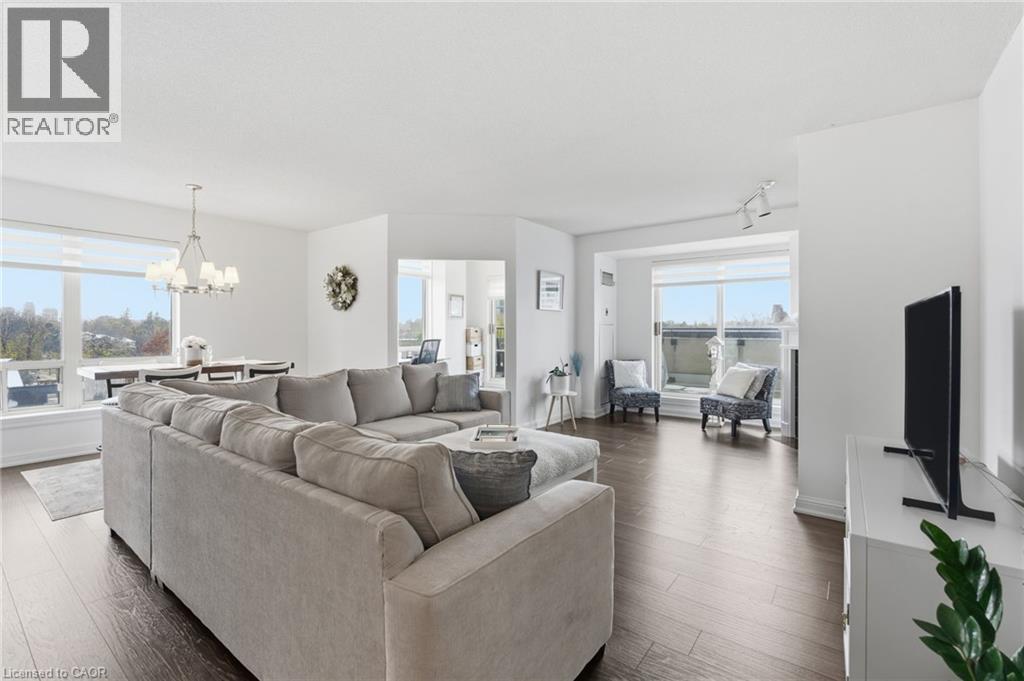 Beautiful Corner Suite by the Burlington Waterfront! Experience elegant condo living at Village Square Condominium, an exclusive boutique residence nestled in the heart of downtown Burlington, just steps from the waterfront, Spencer Smith Park, and an array of shops, cafés, and restaurants. This exceptional 1,470 sq. ft. corner suite offers 2 bedrooms plus a den, perfect for working from home or enjoying a quiet reading space, and 2 full bathrooms. The open-concept design is both inviting and functional, featuring wide plank laminate flooring, floor-to-ceiling windows, and a cozy gas fireplace. The modern kitchen will impress with granite countertops, floor-to-ceiling cabinetry, and a bright breakfast nook. Step onto the expansive east-facing private terrace that spans the full width of the suite making it ideal for morning coffee or evening entertaining. The primary suite offers a spacious walk-in closet with custom organizers and a luxurious ensuite with a double vanity, walk-in shower, and relaxing corner tub. The second bedroom provides direct access to the terrace and is complemented by a beautifully updated main bathroom. This residence boasts a premium northeast exposure, offering exceptional privacy and tranquil views. Included are one underground parking space and one storage locker for your convenience. Enjoy Burlington’s vibrant waterfront lifestyle with The Pier, Art Centre, Spencer Smith Park, and the lakefront trail just steps away, along with convenient access to GO Transit, major highways, and all nearby amenities. Luxury. Location. Lifestyle. (id:63285)
