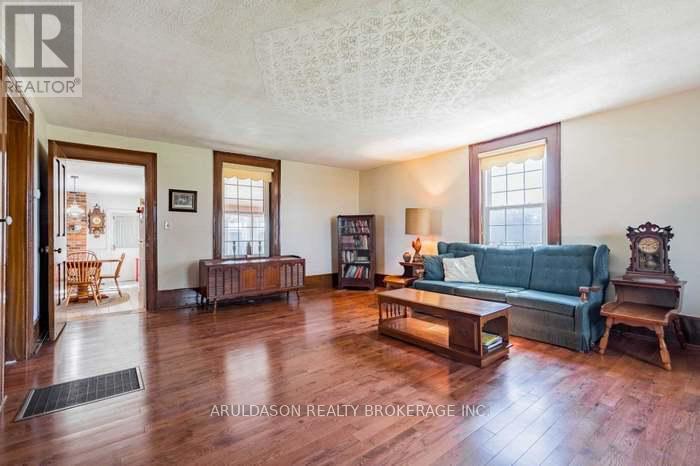 Experience the beauty of country living on this gorgeous 50 acre property featuring approx. 48 workable acres, two barns, and a detached garage. The home offers a warm and welcoming layout with a main-floor bedroom and 4-piece bath, cozy living spaces with two propane fireplaces, and convenient main-floor laundry. Upstairs are three additional bedrooms and a 2-piece bath, perfect for family or guests. The property qualifies for farm tax status and is just minutes to Hwy 407, offering the ideal blend of rural tranquility and accessibility. A wonderful opportunity to enjoy space, privacy, and the charm of farm living. (id:63285)