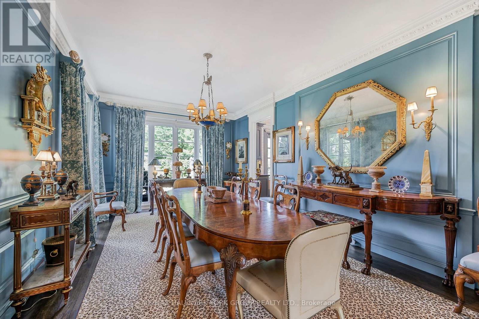 A rare opportunity to own a remarkable piece of history in King Township's prestigious Fairfield Estates. Fairfield Hall is a stately Napier Simpson-designed manor, long regarded as one of the area's premier private estates. Set on 12 pastoral acres with sweeping lawns, mature trees, and classic English gardens, this timeless residence offers unmatched privacy and charm.Inside, you'll find gleaming hardwood floors, 10-foot ceilings, detailed moldings, exquisite millwork, and multiple custom fireplaces. The main-floor primary suite features a luxurious marble ensuite, while the four-season sunroom provides a serene retreat with picturesque views. With five bedrooms in total, the home is ideal for both elegant entertaining and comfortable family living.The grounds include a heated four-car garage and a cobblestone carriage drive, all perfectly situated atop a hill overlooking a world-class equestrian facility and scenic bridle trails. Enjoy close proximity to premier golf courses, top-tier schools, The Country Day School, St. Andrew's College Boys and St Anne's Girls School, boutique local shopping, and Toronto's International Airport. (id:63285)