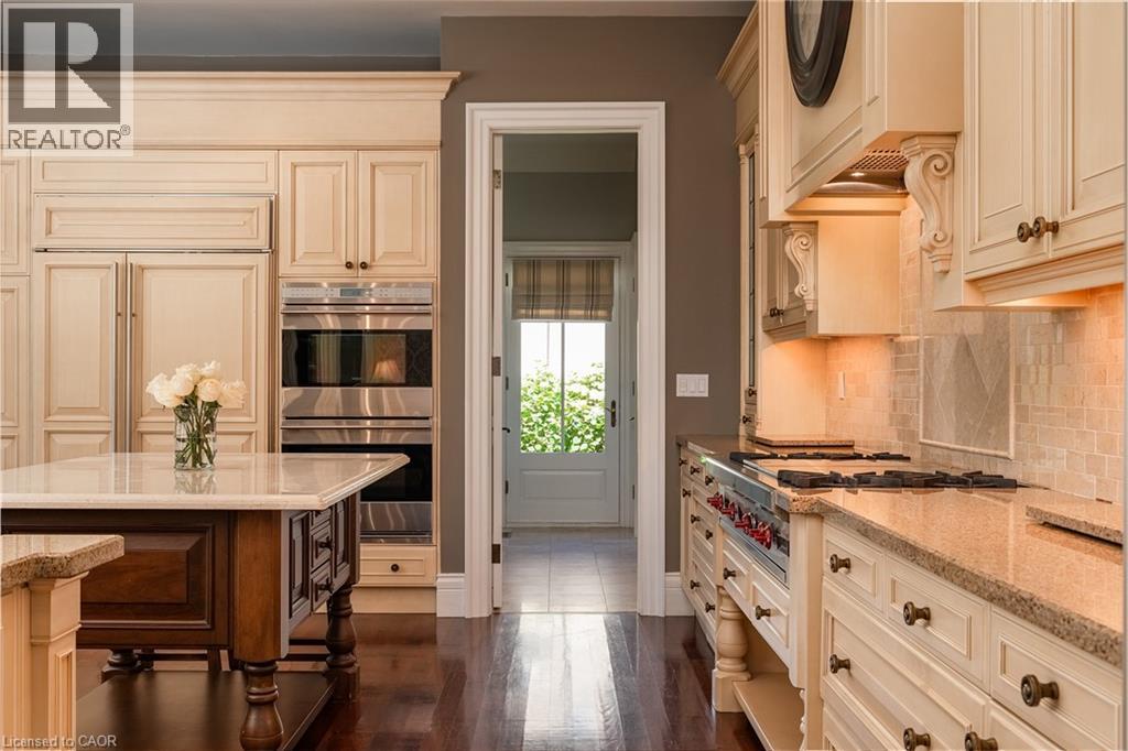 Exclusive lakeside community on a tree-lined private court in south Oakville, just steps from downtown. This sprawling 8,257 sq.ft. of total living space custom residence, set on a 17,500 sq.ft. pie-shaped lot and only one home from the lake, is like none other! Its timeless elevation is framed by extensive natural stone hardscaping (with heated drive and walkway) gunite pool and hot tub (equipment <5 years) and complete privacy, setting the tone for this spectacular home. Inside, you’ll immediately appreciate the sense of volume and refinement. An exceptional floor plan with natural flow, warm hardwood floors, expansive windows, generous principal rooms and soaring ceilings all combining to create an interior that feels both elegant and inviting. At the heart of the home is the kitchen/family room with an expansive Downsview kitchen with wrap-around island, designed for everyday life. A space for family with thoughtful details such as a built-in desk, separate drinks/prep kitchen, pantry, three-piece pool bath and a substantial mudroom. The main level also offers a private primary bedroom wing that opens to the garden and features 12-foot ceilings, a fitted walk-in closet, and an en-suite designed to impress. Upstairs, you'll find the kids retreat. Three bedrooms, each with its own sense of character and charm the perfect getaway that will appeal to the teen set as much as the younger ones. It is, however, the lower level that truly distinguishes this home. A new gym with sauna and full bath sets the stage, complemented by a theatre with Crestron system, custom seating and lighting. A billiards area, two bars, fireplace, two lounges, wine cellar and cantina. An expansive 3,465 sq.ft. of finished living space designed for leisure and entertaining. This remarkable property is further enhanced by a full security system, irrigation and smart-home technology. A one-of-a-kind opportunity in an ideal lakeside setting. (id:63285)