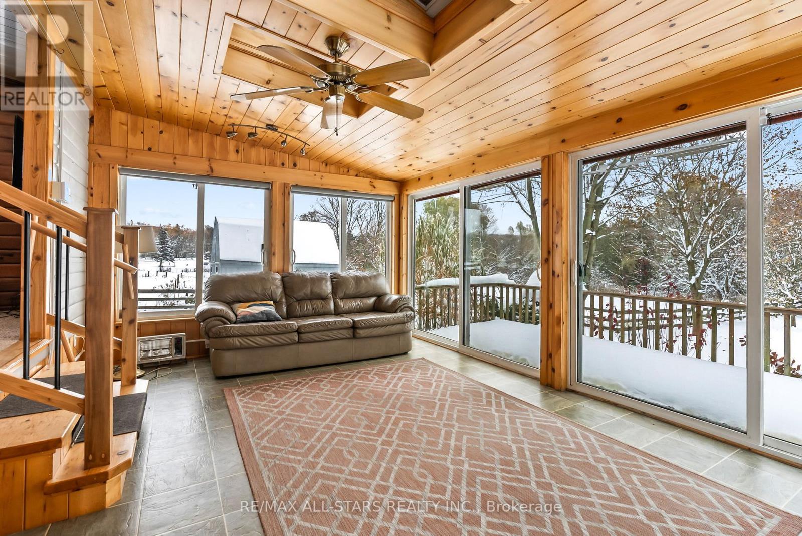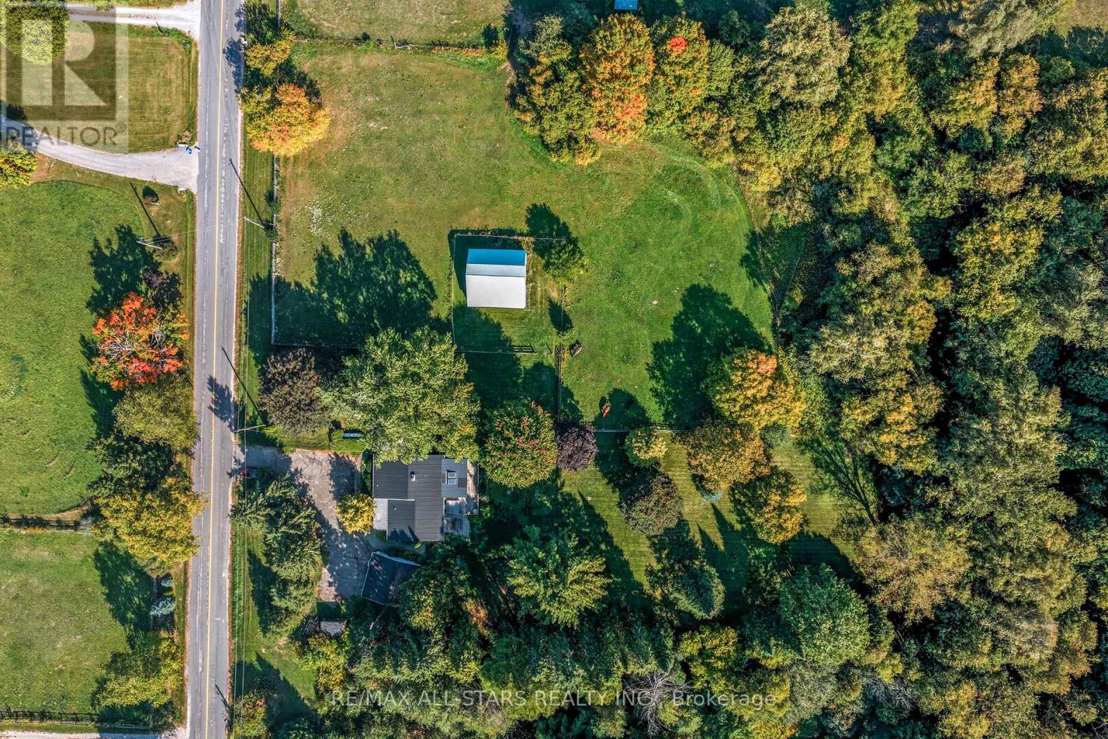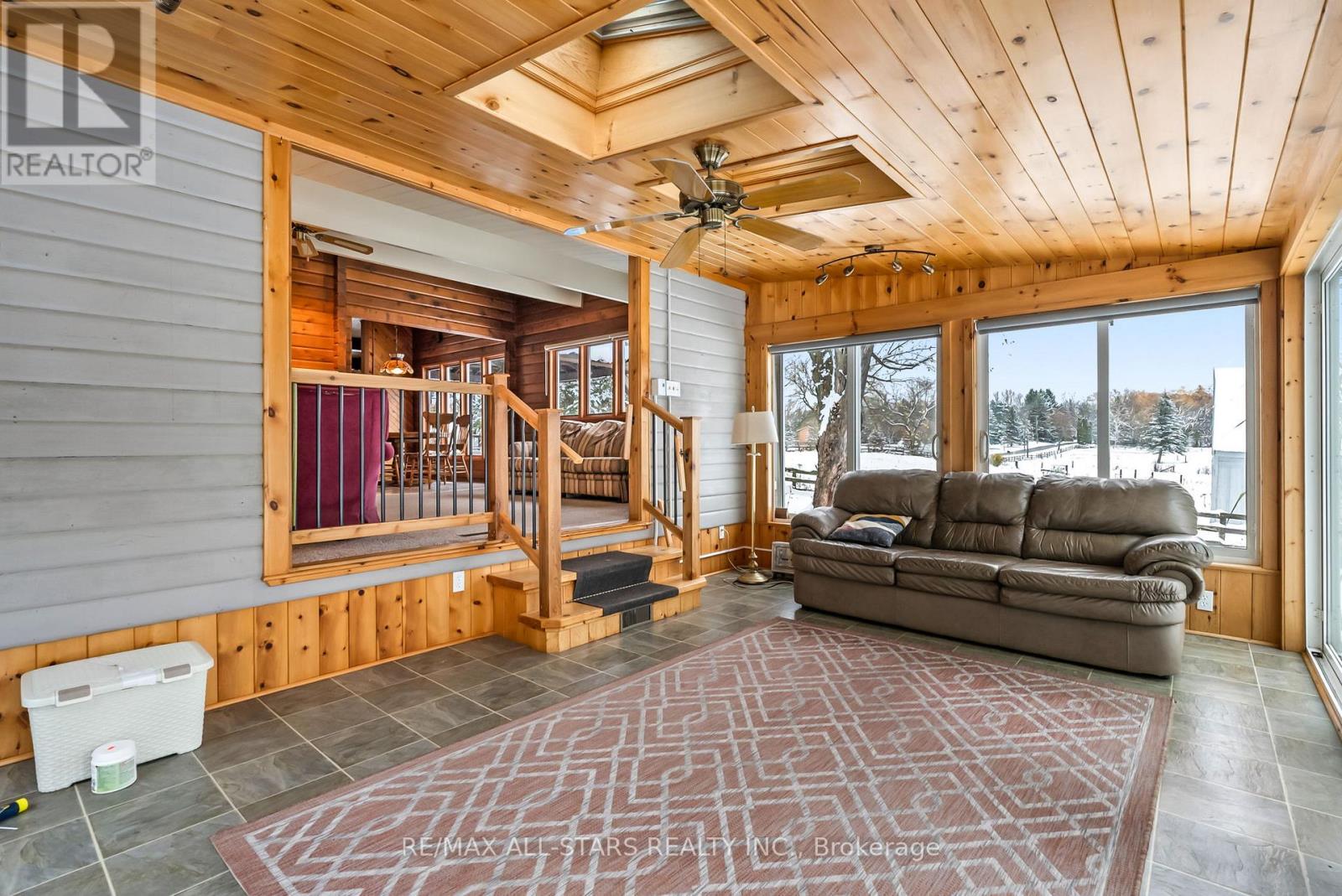 Welcome to your dream country retreat on beautiful Feasby Road - a stunning 10.02-acre (per MPAC) property that perfectly blends rural tranquility with close-to-town convenience. The charming wood exterior bungalow, built in 1968 and offering 1,240 sq. ft. (per MPAC), sits surrounded by rolling pasture and mature trees, making it an ideal setting for horses and outdoor enthusiasts. Complete with a detached garage, barn featuring 4 stalls, a fenced paddock, and a wood shed, this property is truly designed with the equestrian lifestyle in mind. Inside, the spacious country kitchen overlooks the barn and paddock, while the inviting family room with a wood-burning fireplace and the cozy sunroom with skylights create the perfect atmosphere for relaxing after a day outdoors.The home offers three comfortable bedrooms, each with charming wood beam accents, generous windows overlooking the scenic property, and ample closet space. The primary bedroom captures beautiful country views, while the second and third bedrooms are ideal for family, guests, or even a hobby room. A convenient main floor office/den provides extra flexibility for remote work or creative projects. Lower-level provides a laundry area with utilities sink, plenty of storage, and a 3-piece bathroom with a shower. This home combines comfort, character, and country charm. Whether you're looking to raise horses, enjoy wide-open spaces, or simply escape to nature without leaving the conveniences of town behind, this 10-acre gem is the perfect place to call home. (id:63285)