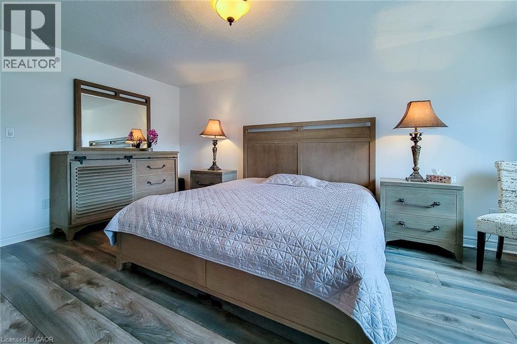 Primary bedroom with wood finished floors and a textured ceiling