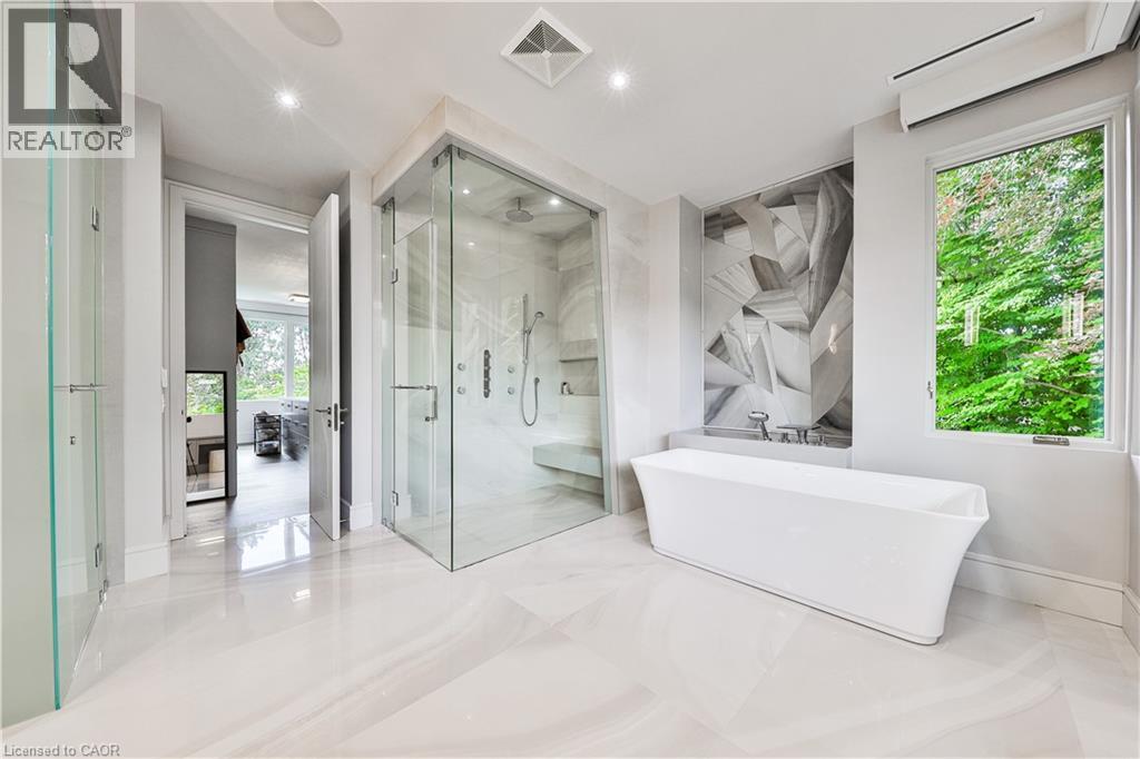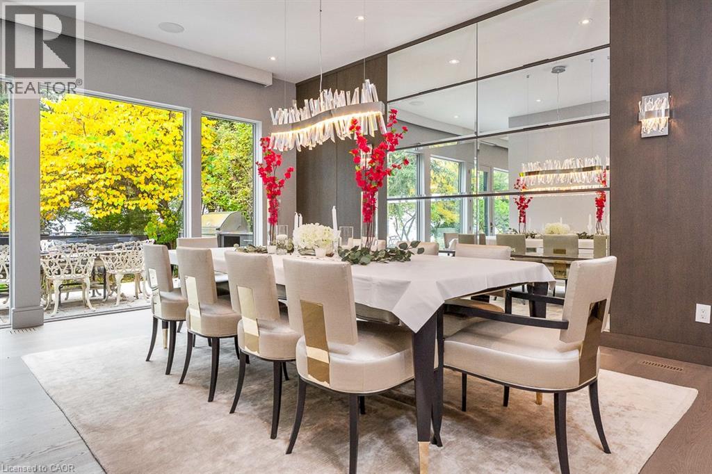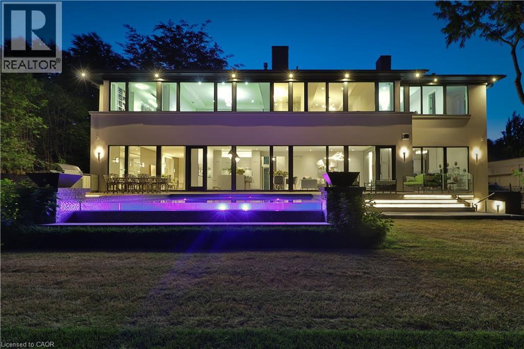 Designed to capture panoramic water views - Waterfront luxury awaits at 2250 Chancery Lane W. On exclusive SE Oakville enclave, this modern masterpiece offers 9,177 sf w/5 bdrms & 7 baths. Bright & airy w/ soaring 10ft ceilings on every level & vast windows. Chef's kitchen w/ modern cabinetry, quartz countertops & slab backsplash & top-of-the-line Gaggenau B/I appliances. All living & entertaining spaces are generously proportioned, offer lake vistas & lux finishes such as suspended slab fireplaces, designer lighting & integrated storage to maintain a sleek aesthetic. Multiple walkouts lead to natural stone terrace & infinity pool. MF office. Upstairs - Primary retreat, w/spa-like ensuite & Lake views. 3 add'l bdrms, each w/ensuite, & a laundry rm. Lower Level-Automated theatre, golf simulator, rec/games room w/wet bar; 5th bedroom, exercise room, wine wall, 2 full bathrooms, & walk-up to yard. 3-level elevator, heated tiled floors & full home automation. LUXURY CERTIFIED. (id:63285)