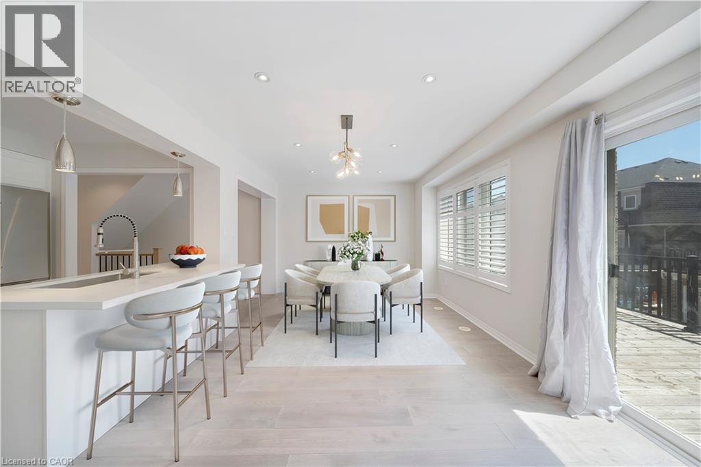 Dining room featuring recessed lighting, light wood-style flooring, and a chandelier