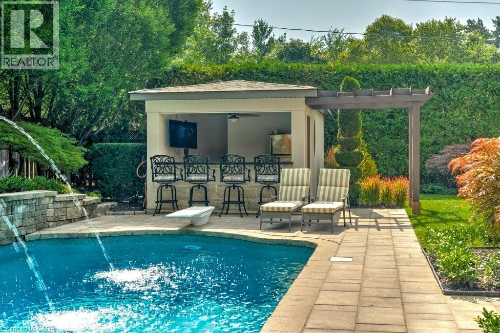 A True Showstopper in Morrison! Built by PCM Homes, this timeless residence offers over 6100sqft of immaculate living space, designed with elegance and attention to detail throughout. Step inside the grand foyer and discover: Formal living and dining rooms, perfect for entertaining, A gorgeous main floor office with custom floor-to-ceiling wood built-ins, Travertine stone flooring with seamless flow through the servery into the gourmet kitchen, featuring high-end Miele appliances and open concept design with the family room. Upstairs you will find 4 spacious bedrooms with vaulted ceilings, a convenient laundry room, and 3 full bathrooms. The lower level is ideal for family living and entertaining with an expansive recreation/games room, Gym and bar area with a walk-in wine room, 5th bedroom and full spa-inspired bathroom with steam shower. The resort-style backyard is the crown jewel, offering complete privacy with mature gardens, a covered porch, heated pool with waterfalls, and a cabana/change room with TV, bar area and a 2-piece bath. Additional highlights include rare 3-car garage and circular driveway, recently replaced roof, furnace, AC, alarm/security camera equipment throughout, designated Energy Star home and updated garage doors. Situated on a quiet crescent in highly sought after Morrison, close to downtown, parks, and top-rated schools. This is luxury living at its finest — a home that even the most discerning buyers will fall in love with! (id:63285)