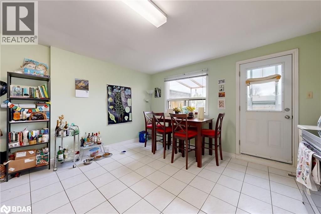 Dining space featuring light tile patterned floors