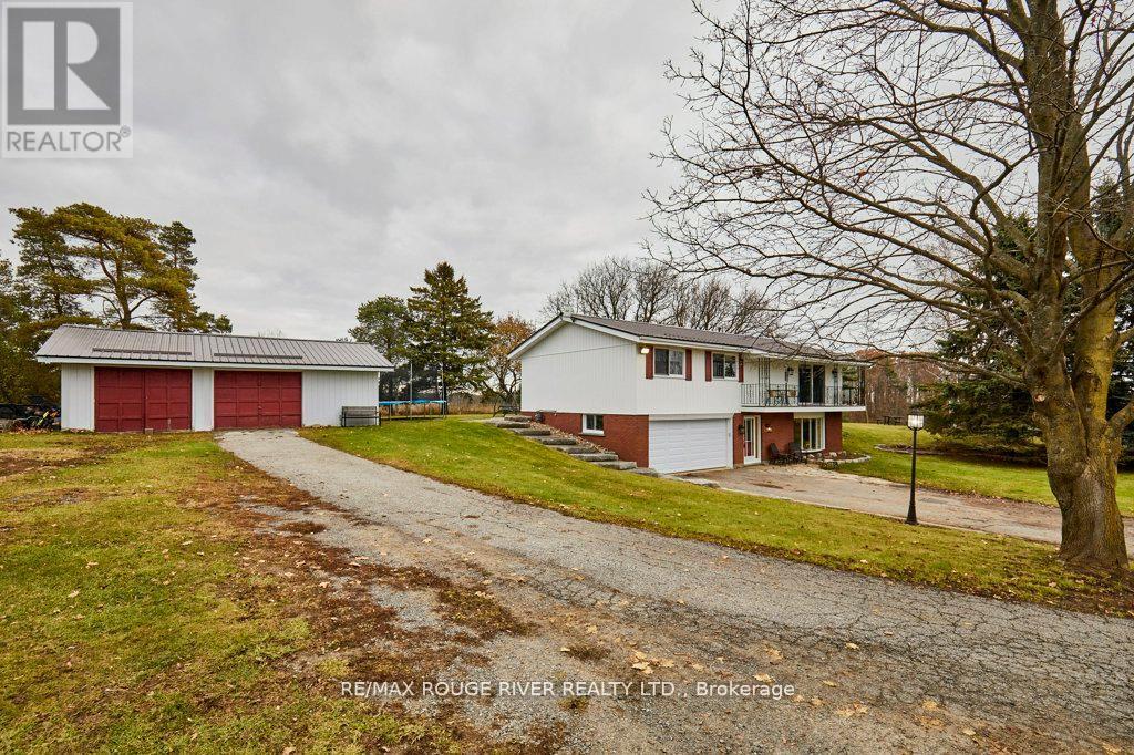 Excellent 10 Acre Hobby Farm / Horse Farm. Ideally situated between North Oshawa and Port Perry with quick access to 407, Costco, mega shopping district, parks, raglan trails and golf courses. Detached double garage workshop (Can be converted to a legal 2nd living suite) + a detached Livestock Barn with stalls equipped with hydro and water. Renovated Kitchen 2016. Extensive 8" Natural Limestone Landscaping 2016 approx $60,000 market value. Natural gas heat. Rough in 3pc bath in basement. Metal Roof. The property offers rolling hills, pond, paddocks, privacy, forested setting; as well as public land behind for snowmobiling, dirt biking and 4 wheeling. Spacious floor plan with lot of natural light and walk out to balcony. Ideal for families. (id:63285)