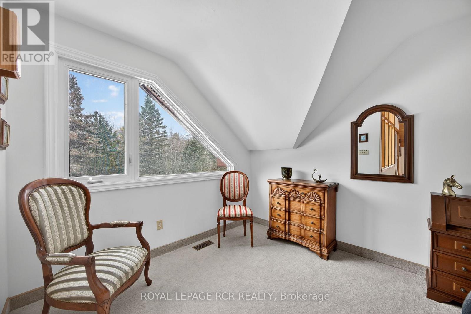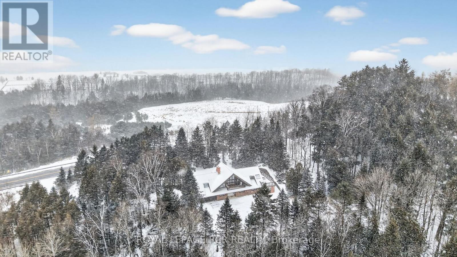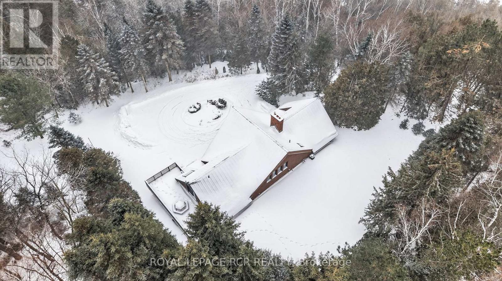 Offered for the first time since 1988, this exceptional chalet-style home is a rare opportunity to own a truly unique property on nearly 3 acres of forested land. Tucked away yet ideally located on Hwy 9 just west of Airport Road, it offers outstanding access to the GTA and Pearson Airport while feeling completely removed from it all. Surrounded by mature trees, the home evokes the charm of a European mountain retreat, featuring soaring vaulted ceilings, expansive windows, and warm architectural details that invite the outdoors in. The thoughtfully designed layout includes 4 bedrooms and 2 bathrooms, with two lower-level bedrooms offering their own attached living areas-ideal for extended family, in-laws, or flexible living arrangements. Meticulously maintained, the home presents an incredible blank canvas for future updates while offering solid long-term value. Key features include a metal roof, many newer windows (2022), natural gas heating, central air conditioning, a two-car garage, and a circular driveway with parking for at least eight vehicles. Private, peaceful, and unlike anything else on the market, this hidden retreat must be experienced to be fully appreciated. (id:63285)