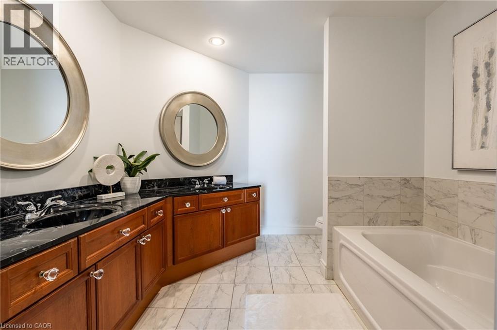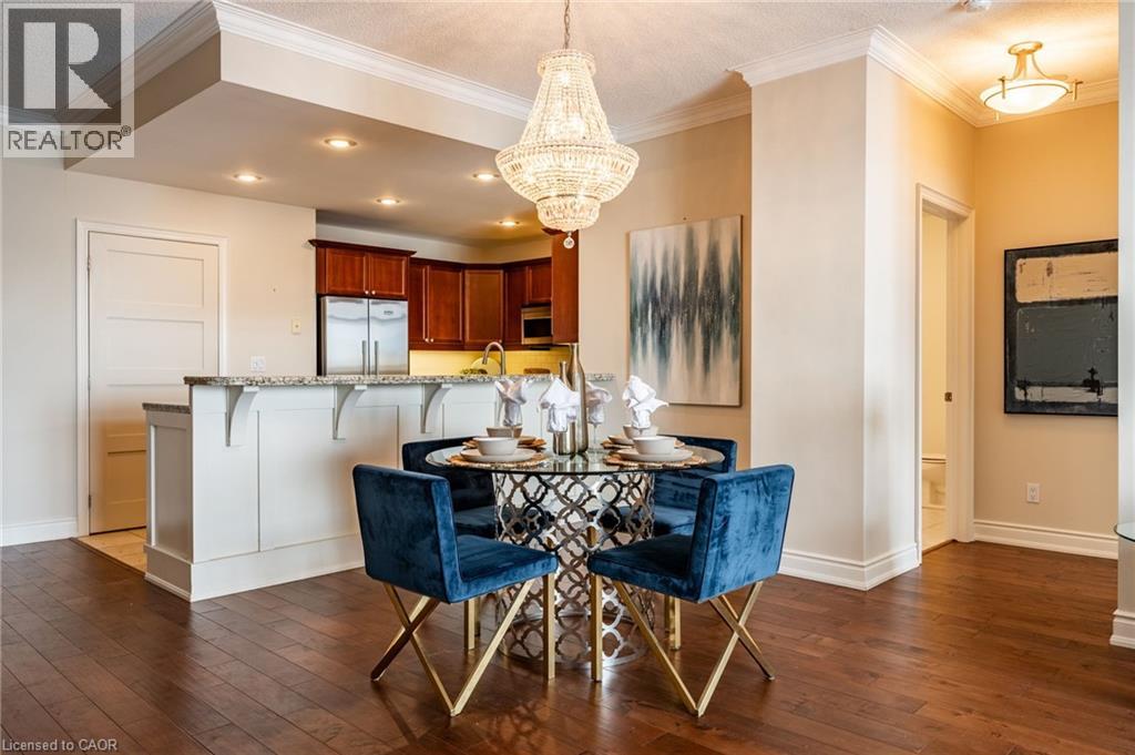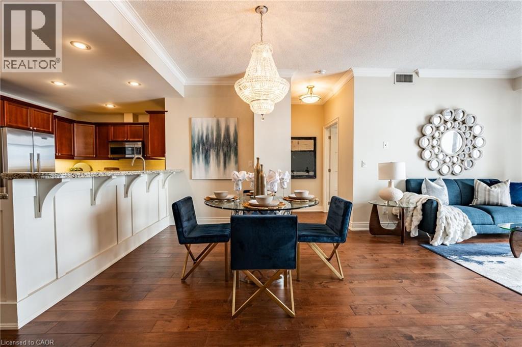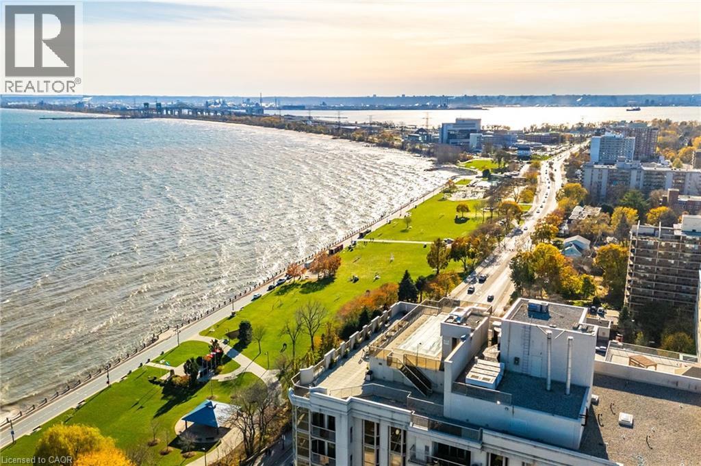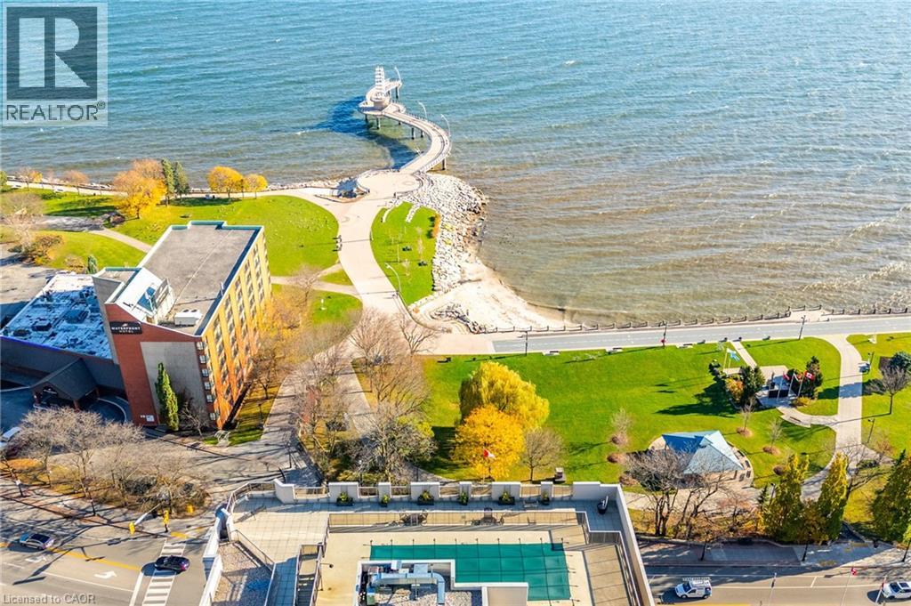 A rare offering for the discerning downsizer seeking luxury, space, and lifestyle, this exceptional condo delivers over 1,400 sq ft of thoughtfully designed living with stunning lake views from the main living space and both bedrooms! Expansive windows frame sweeping water, escarpment, and city views, creating an elevated yet comfortable home ideal for those transitioning from a larger property without compromise. The open-concept layout is perfectly scaled for entertaining and everyday living, featuring a sophisticated kitchen with custom cabinetry, stainless steel appliances, an oversized island, and a dedicated dining area. The spacious living room is anchored by a fireplace and opens to a private terrace—ideal for morning coffee or evening sunsets over the lake. This well-managed, luxury building offers premium amenities including a rooftop pool and terrace with panoramic lake views, concierge service, fitness centre with golf simulator, steam room, and an elegant party room—providing the convenience and ease downsizers value most. Steps to Spencer Smith Park, waterfront trails, fine dining, cafés, and boutique shopping, with quick highway access for effortless travel. Includes one underground parking space and one locker. An outstanding opportunity to enjoy low-maintenance, upscale lakeside living in one of downtown’s most desirable addresses. (id:63285)