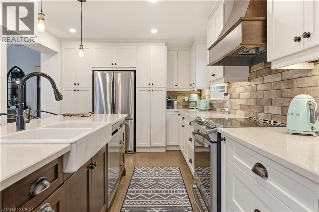 Kitchen with appliances with stainless steel finishes, white cabinets, custom range hood, and recessed lighting