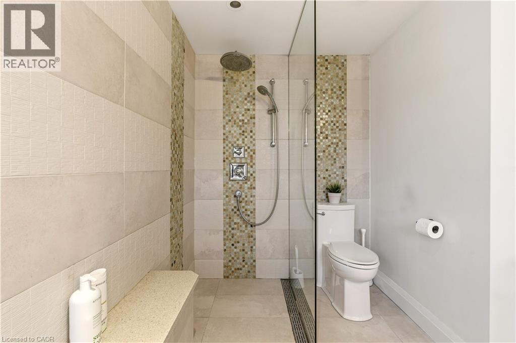 Bathroom featuring tile walls, a walk in shower, a bath, and light tile patterned floors