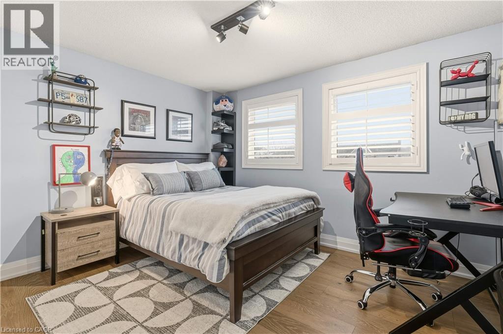 Bedroom featuring a desk, wood finished floors, a textured ceiling, and track lighting