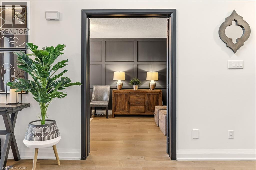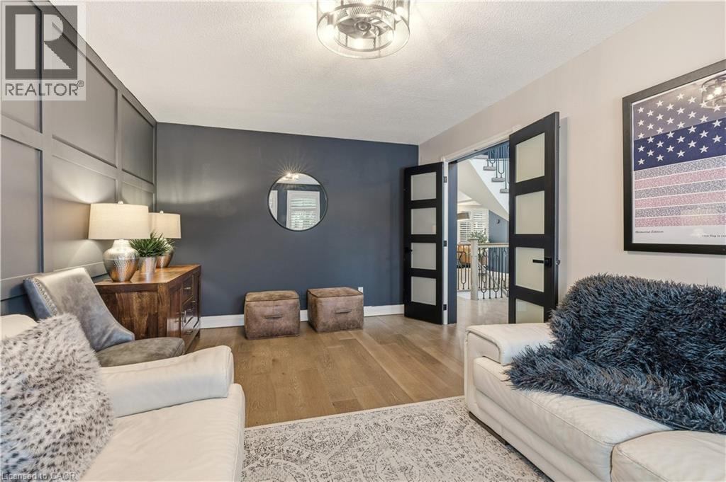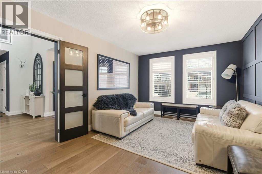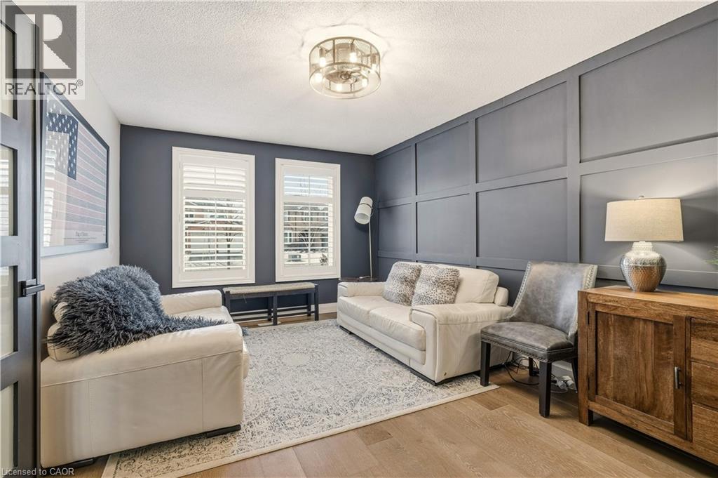 Living area featuring wood finished floors, a textured ceiling, and an accent wall