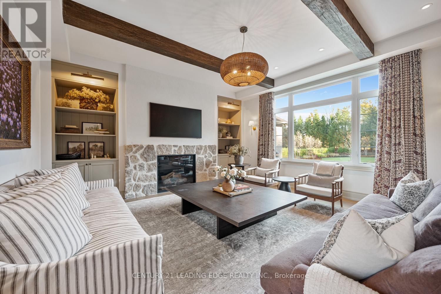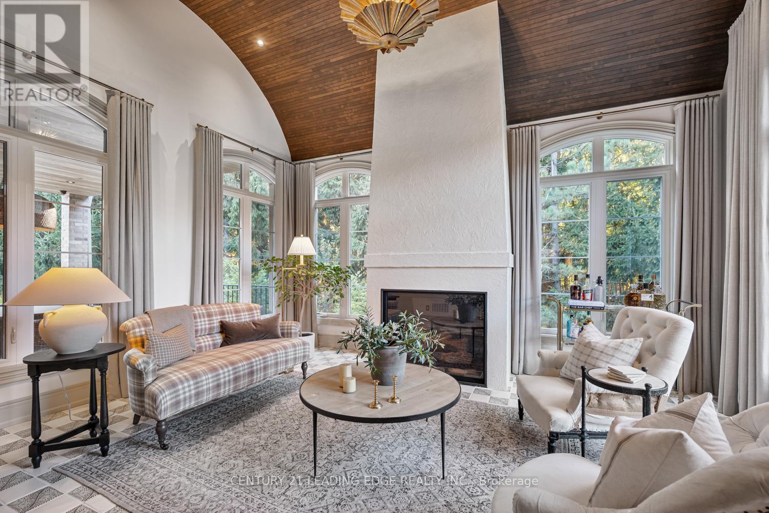 Set on nearly 1.5 acres and enveloped by untouched forest, this remarkable estate boasts more than 8,000 square feet of finished living space, including a walk-up basement, ideal for both single-family or multi-generational living. Expertly crafted and privately constructed outside of standard builder specifications, this home was professionally designed by a House & Home Top Designer. Every detail has been carefully planned and curated for both function and beauty, from premium wall finishes and distinctive tile work to dramatic beamed ceilings and statement light fixtures, just to name a few. Whole home automation provides easy controls of security, climate, cameras, Lutron lighting & automated blinds, garage doors and even media. The main floor flows effortlessly, featuring a formal conservatory wrapped in windows, a spacious dining room that opens to the terrace, a stylish office, and a highly functional mudroom. The top-of-the-line custom chef's kitchen includes professional-grade Miele appliances, a Lacanche range, a cozy breakfast area with hidden coffee bar, and a butler's pantry, all overlooking the stunning great room, ideal for entertaining. Upstairs, the luxurious primary suite offers a gas fireplace, wet bar/coffee station, spa-like ensuite, and His & Hers dressing rooms. The finished walk-up basement is equally impressive, with a large recreation room, oversized kitchenette, fifth bedroom, two bathrooms, craft and play rooms, pantry, and a dedicated golf simulator for the sports enthusiast. Outside, the home is professionally landscaped for a grand garden feel. A covered terrace with outdoor kitchen expands your living space. Three garages (one with a lift) hold four vehicles, including access to a flexible space currently used as a private gym. This one-of-a-kind home, with millions spent on custom upgrades, is ready to be appreciated for its luxury and charm. (id:63285)