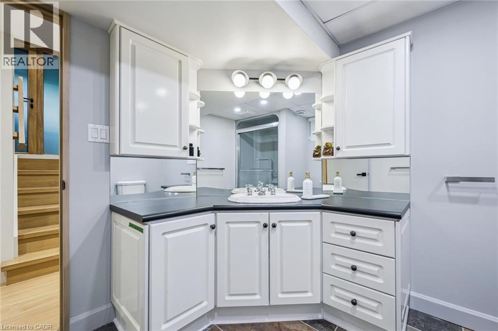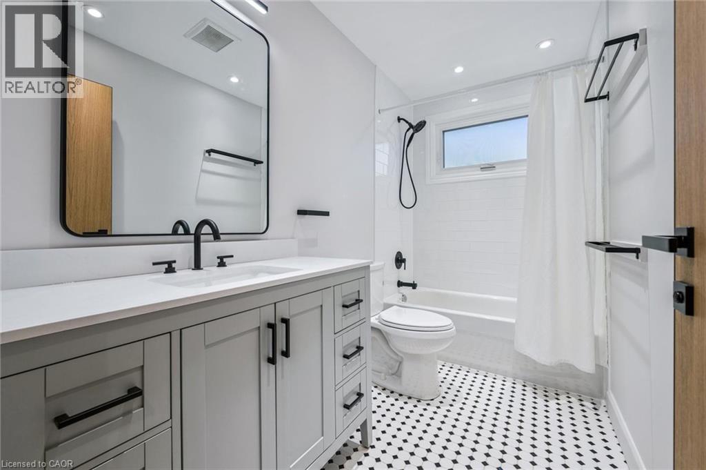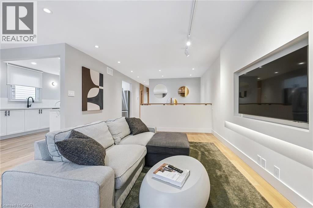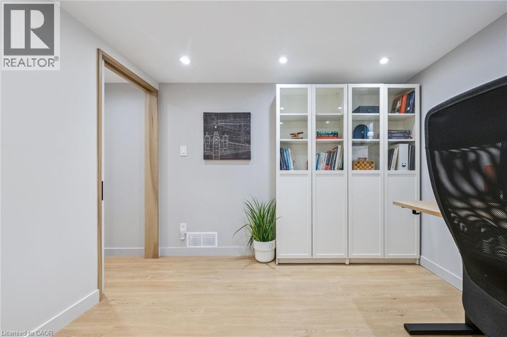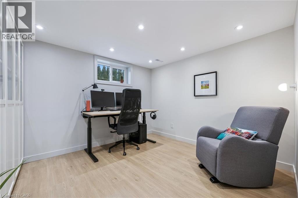 Beautifully Updated Raised Bungalow on a Quiet Crescent with In-ground Pool! Welcome to this thoughtfully upgraded 3+1 bedroom, 2-bathroom + office raised bungalow located on a quiet crescent in a desirable Burlington neighbourhood. With no rear neighbours and a private setting, this home offers comfort, quality, and functionality in equal measure. The bright, open-concept main level features refinished hardwood flooring (2022), interior pot lights throughout (2022), updated interior doors, and refined finish carpentry. Large windows fill the living and dining areas with natural light. The well-appointed kitchen includes stylish cabinetry, two separate sinks, a gas cooktop, and new premium appliances: fridge, dishwasher, and built-in wall oven (2025). The spacious primary bedroom features sound-insulated walls for enhanced privacy. Three additional bedrooms and an office (currently used as a walk-in closet) provide flexibility for family, guests, and work. The fully finished basement was refinished in 2022 (excluding the bathroom) and has been sound insulated from the main floor. Step outside to a private backyard retreat featuring an in-ground pool, two-tier deck, and concrete patio, perfect for entertaining. A unique bonus is the pool bar that's equipped with a roll-up door on the driveway side, allowing it to double as secure storage for bikes or a motorcycle. The current owners have made extensive updates including attic insulation (2022), updated stairs and railing (2022), a front door with a 3-point locking system (2022), furnace (2021), air conditioning (2017), owned hot water tank (2017), pool liner (2015), and roof (2012), basement and new finishes throughout. The property also offers a double-wide private driveway and carport. Conveniently located close to schools, parks, public transit, shopping, and major highway access, this move-in-ready home is a rare opportunity in a quiet, family-friendly neighbourhood. (id:63285)