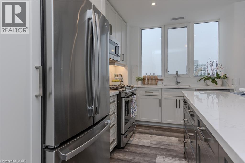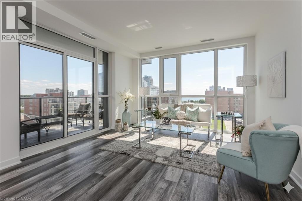 Experience elevated condo living at Gallery Condos, located in the heart of Burlington’s vibrant downtown core, where luxury, lifestyle, and breathtaking lake views come together seamlessly. Spanning 1,064 sqft, this stunning residence offers panoramic waterfront vistas and a front-row seat to one of the city’s most sought-after urban lifestyles—perfect for young professionals who want it all, just steps from their door. Inside, a modern and highly functional layout is flooded with natural light, complemented by upgraded wide-plank hardwood flooring throughout. The striking eat-in kitchen blends style and practicality with quartz countertops and backsplash, stainless steel appliances, deep pot-and-pan drawers, a pantry cabinet with efficient roll-out shelving, valance lighting, and a generous island with breakfast bar—ideal for hosting, working, or unwinding. Floor-to-ceiling windows in the spacious living area frame picturesque lake views and open to a private balcony with gas line for BBQ, creating an effortless indoor-outdoor connection. The primary suite is a true retreat, featuring floor-to-ceiling windows, a walk-in closet, and a spa-inspired ensuite with oversized vanity, deep soaker tub, and glass walk-in shower. A second bedroom with floor-to-ceiling windows offers flexibility for guests or a home office, complemented by a sleek four-piece main bath and convenient in-suite laundry. Parking and a storage locker are included. Residents enjoy an impressive collection of amenities including a contemporary lobby lounge, fully equipped fitness centre, co-working and meeting spaces, party and games rooms, media room, indoor lap pool, rooftop terrace with community BBQs, guest suites, concierge service, and a car wash. Set in an unbeatable lifestyle location, you’re steps from exceptional dining, cafés, entertainment, waterfront parks and trails, daily essentials, transit, and quick highway access—urban living at its most refined. (id:63285)