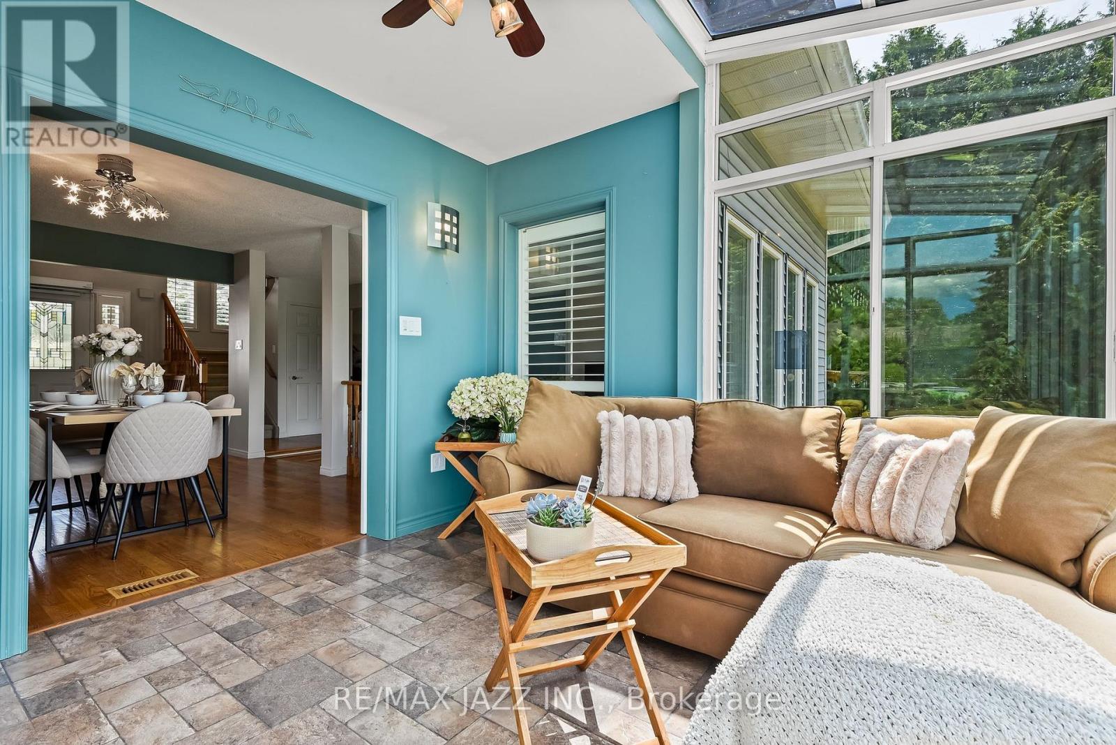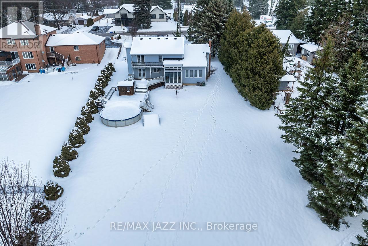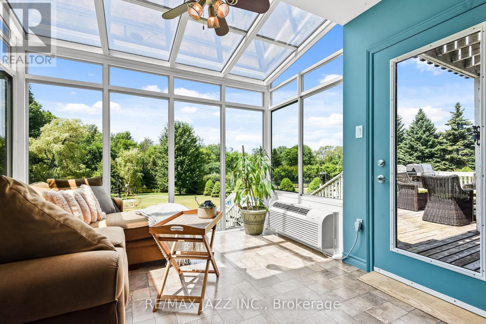 Thoughtfully designed for fully accessible living, this fabulous Mitchell Corners custom built home includes a full elevator, ramps, electronic entry door & a beautifully designed barrier-free ensuite. Nestled on a park like lot of 3/4 acres with sweeping lawns, full grown trees & idyllic privacy, this gorgeous open concept home offers a spacious floor plan of 2,882 sqft above grade, plus a sensational 4-season sunroom addition that overlooks the expansive rear yard. It's just magical! Numerous updates abound, including shingles ('15), furnace & A/C ('20), HRV/HEPA system ('21), sunroom ('09), fantastic ensuite ('20) featuring a jet tub, curbless shower, & double vanity, & a spectacular custom W/I closet fit for any fashion queen! The voluminous sunken living room features California shutters, hardwood floors, vaulted ceilings, & a gas fireplace, all overlooked by a spacious formal dining room with W/O to the sunroom. A convenient main floor office offers added functionality. The large kitchen & family room combination boasts a wood-burning fireplace, large island, eating area, & W/O to extensive decking & a 21ft aboveground pool. A handy powder room & main floor laundry with direct garage access complete the main level. Upstairs, the primary suite boasts engineered hardwood, W/O to balcony, elevator access, diva-worthy W/I with a plethora of custom shelves & cabinets, & 5-pc accessible ensuite with skylight. Two additional bedrooms are serviced by an updated 4-pc bath. The full, unspoiled basement with 2-pc rough-in offers wonderful potential to tailor the space to your needs. Serene & private, the entire lot boasts bountiful mature trees & gardens, a solar-heated aboveground pool (10 years old), & two garden sheds. Additional features include a generous double garage & driveway parking for 12 cars! Country but close, Mitchell Corners is a highly sought after community at Taunton & Trulls roads, offering close proximity to every conceivable amenity plus the 407! (id:63285)