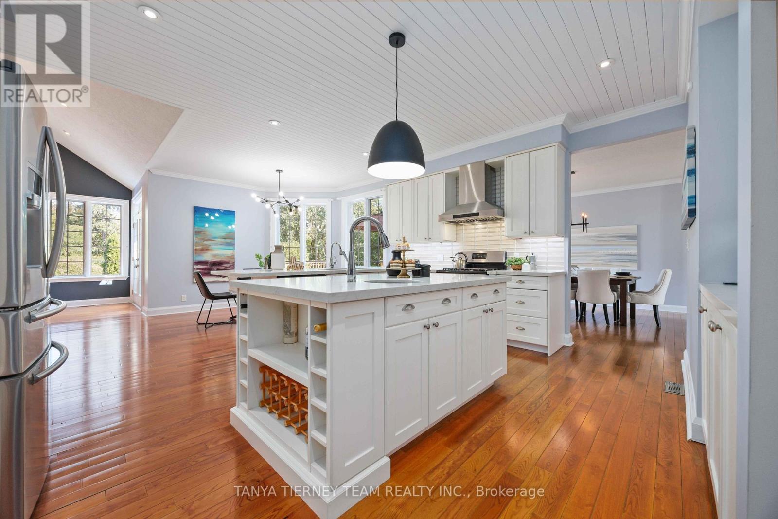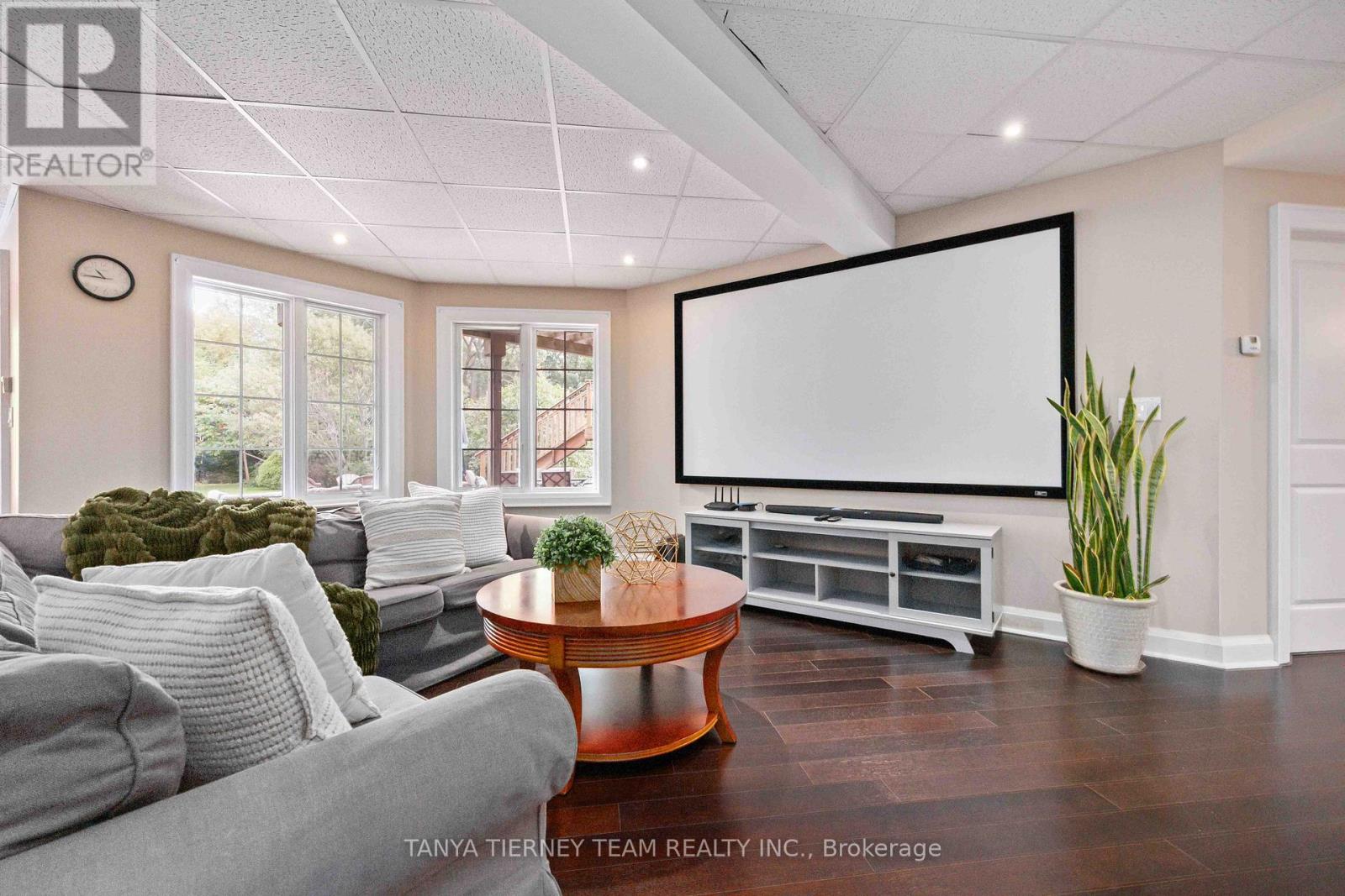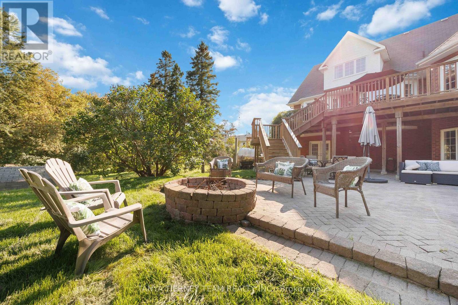 Truly one-of-a-kind, this custom 4+2 bedroom, 5-bathroom estate offers over 6,500 sq ft of luxurious living space on a spectacular 245-ft deep treed ravine lot-an opportunity that is nearly impossible to replicate today, as you could not build a home of this size or acquire a property like this for under $2 million. Designed with multi-generational living in mind, this home features a spacious open-concept layout, a fully finished walkout basement with separate entrance, and flexible living areas ideal for extended family or in-law accommodation.The gourmet kitchen is the heart of the home, complete with quartz countertops, oversized island, walk-in pantry, built-in coffee bar, and breakfast area overlooking a private backyard retreat. The upper level includes 4 large bedrooms and a media room, while the basement offers 2 additional bedrooms, a large rec room, office, spa-like bathroom, and cozy in-floor hydronic heating-perfect for independent living with comfort and privacy.Step outside to your own resort-style oasis: an elevated deck with ravine views, covered walkout patio, in-ground pool, jacuzzi hot tub, built-in fire pit, gas BBQ hookup, and a handcrafted wood-burning pizza oven. Whether entertaining or unwinding, this backyard has it all.An attached 882 sq ft 3-car garage with heated workshop, garden door access, and ample parking adds function to elegance. Located minutes from Hwy 407 and steps to top schools, parks, big box stores, Cineplex, and more, this exceptional home blends space, style, and multi-generational living in one of Clarington's most desirable settings! (id:63285)