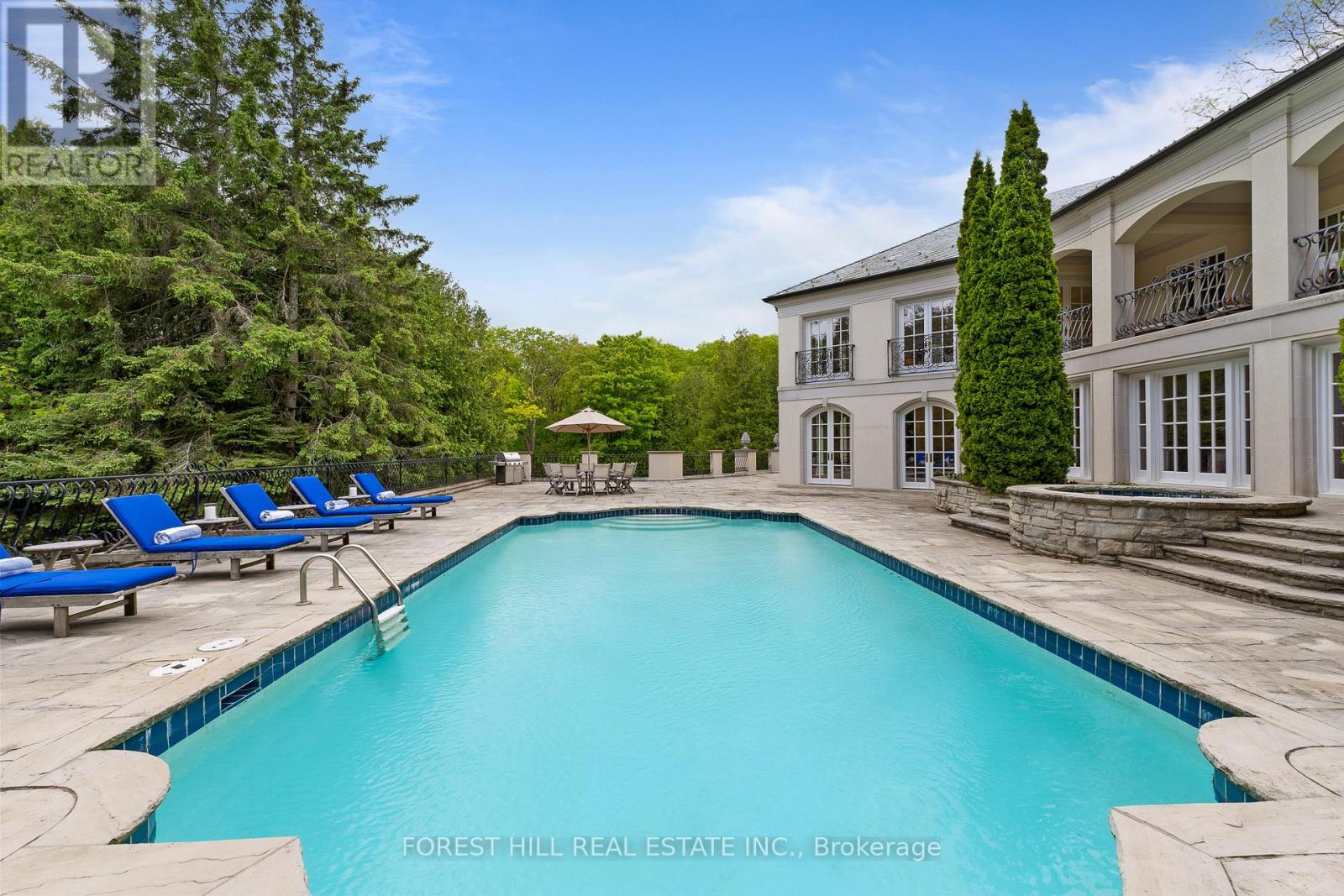 Gated and tree-lined for total privacy, 68 Crows Pass is a Gordon Ridgely-designed Indiana-limestone and slate manor that delivers true four-season living just forty-five minutes from downtown Toronto via direct Highway 407 access. The home wraps approximately 7,000 sq ft of interiors around authentic 1802 farmhouse stone walls and hewn beams, beginning with a marble rotunda and hand-forged spiral staircase that lead to principal rooms opening onto a 100-foot limestone terrace overlooking a heated salt-water pool, whirlpool and hot tub. A Sub-Zero, Thermador and Miele kitchen centres a twelve-foot island and sun-splashed breakfast bay, while the adjoining beam-clad family room and original stone dining hall celebrate the estates heritage. Upstairs, five ensuite bedrooms and a library or sixth bedroom await; the forty-three-foot primary wing enjoys three sets of French doors to private balconies, a fireplace sitting area, twin walnut dressing rooms and a spa bath framed by a Palladian window. The walk-out lower level provides a games lounge, wet bar, guest suite and covered loggia, ensuring effortless indoor-outdoor entertaining through every season. Lifestyle amenities continue outside: a heated three-plus-car coach house currently a full gym and additional bedroom the loft-style second garage crowns the stone-clad barn for additional collectibles. Equestrians will value three stalls, a tack room, two cross-ties and a fenced paddock, and ready for an arena, and dual gated drives simplify daily comings and goings. This home offers Starlink, multi-zone HVAC, water purification, EV Charger, Credit Valley sandstone accents and a slate roof complete this rare fusion of architectural pedigree, resort comfort and year-round recreation, with Dagmar and Lakeridge ski clubs, golf courses and trail networks only minutes away. Zoning per Township of Scugog Zoning By-law: ORM-EP (Oak Ridges Moraine Environmental Protection) (id:63285)