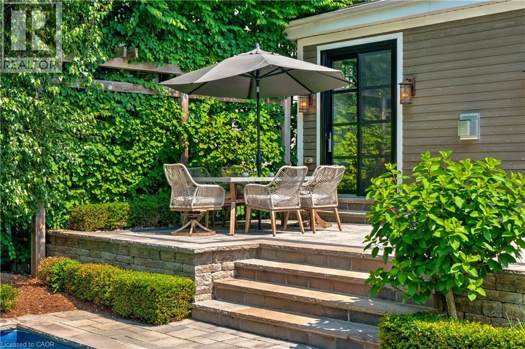 Curb appeal that captivates, & a backyard sanctuary you'll never want to leave! Welcome to one of Burlington's most sought-after neighborhoods, where this stunning 4+1 bedroom, 3.5 bathroom residence offers exceptional living space & an extraordinary outdoor retreat. Step inside to discover hand-scraped hardwood floors flowing through light-filled rooms, beginning w/ an elegant formal dining room ideal for memorable gatherings. The beautifully appointed kitchen showcases premium cabinetry, granite countertops, & an oversized island that serves as the heart of the home. It seamlessly connects to an expansive great room adorned w/ a coffered ceiling & striking stone fireplace, w/ dual walk-outs to your private oasis beyond. The thoughtfully designed main level includes a versatile bedroom/office, a convenient mudroom w/ laundry & garage access, & a sophisticated powder room. Ascend to the second floor where the luxurious primary suite awaits, complete w/ a generous walk-in closet & spa-inspired ensuite featuring a soaking tub w/ garden views & frameless glass shower. Two additional well-proportioned bedrooms & a full bathroom complete the upper level. The professionally finished lower level expands your living options w/ a spacious recreation room, cozy sitting area, fifth bedroom, & full bathroom, perfect for guests or multi-generational living. The backyard is where this home truly shines. Step into your own private paradise: a meticulously landscaped haven featuring mature specimen trees, vibrant perennial gardens, & dozens of flourishing hydrangeas. Elegant stonework winds through the space, while low-maintenance premium turf ensures year-round beauty. Entertain in style on the oversized porch w/ built-in BBQ station, take a dip in the sparkling in-ground pool (featuring newer liner, pump, & cartridge filter), relax by the soothing waterfall feature, or gather around the gas fireplace in the covered outdoor lounge. This is more than a home, it's a lifestyle. (id:63285)