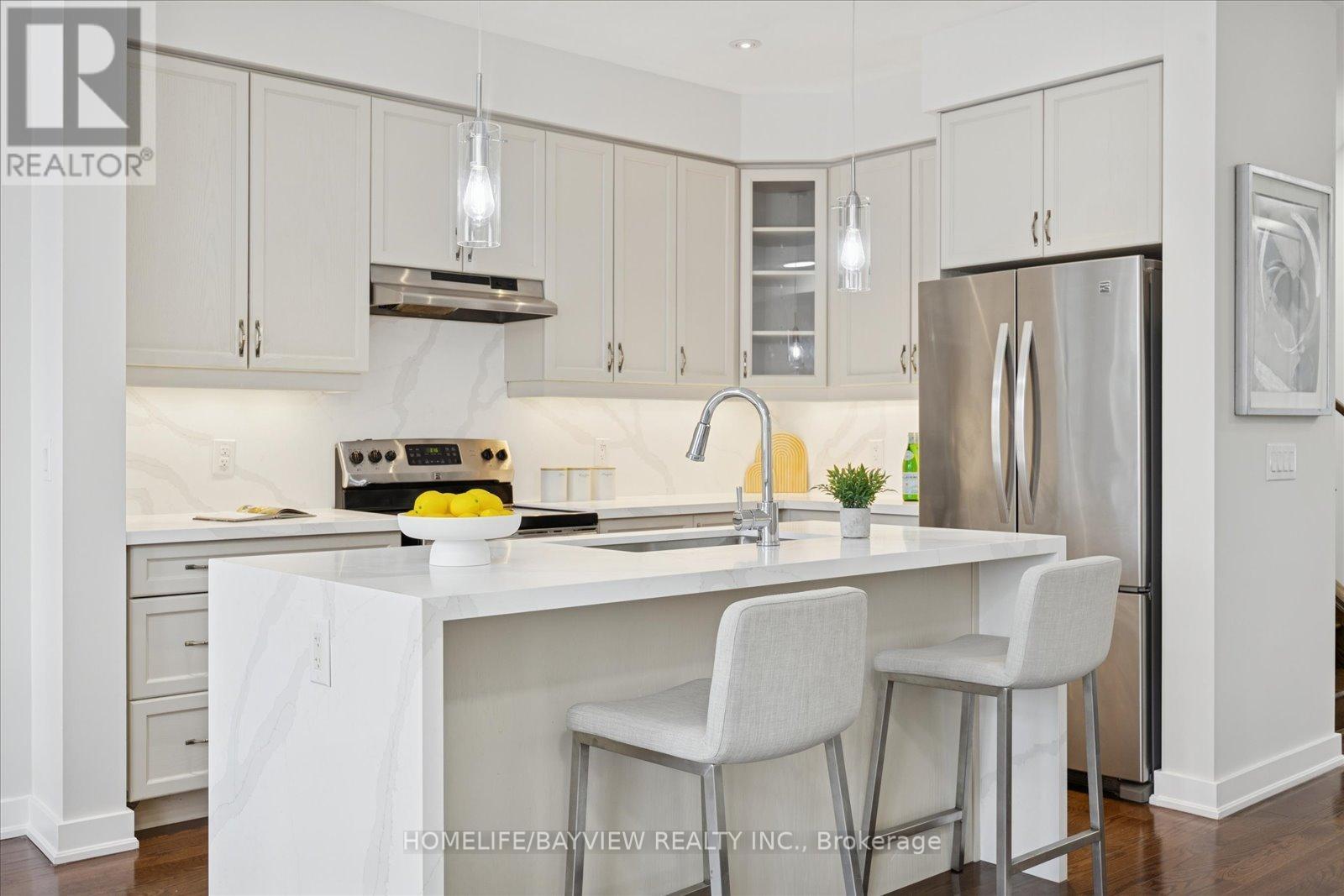 Beautifully Designed Contemporary 3 Bdrm + Den T/House Nestled On A Premium Ravine Lot Within the Kettle Lakes Club Community. This Freshly Painted Aspen Ridge Model Is One Of The Most Desirable Plans Offering 2066 Sqft of Living Space & Modern Finishes Throughout. Features Include: A Double-Door Entry, Interior Garage Access, Smooth Ceilings Thru-out, Dark-Stained Hardwood Floors Paired With A Stylish Wrought Iron Staircase. Enjoy A Second-Story Balcony, Spacious Bedrms W/New Laminate Flooring & A Convenient 2nd-Floor Laundry Room. The Open Concept Layout Highlights A Modern Chef's Kit W /Center Island / Undermounted Sink, Pot Drawers, New Quartz Counters & S/s App- Perfect for Hosting Large Family Gatherings! Retreat and Unwind in the Primary Suite Complete With A Spa-Like Ensuite and Surrounding Serene Views! The Finished Lower Level Provides A Spacious Family Room With Flexible Space to Customize. Step Out Onto The W/O Deck Where You Can Enjoy The Tranquil Ravine Views, Plus Access To Walking Trails, Oak Ridges Rec Center, Parks & Nearby Lake Wilcox. A Vibrant Community Ideally Located Near Schools, Daycares, Shops, Transit, The GO Train, and Hwy 404 For Effortless Commuting! (id:63285)