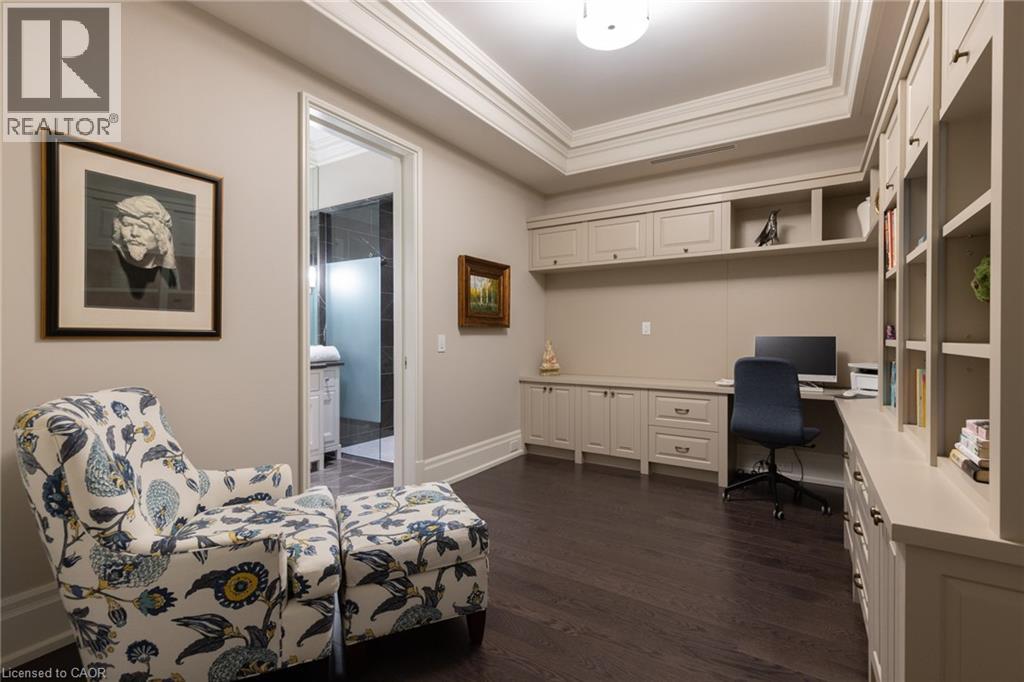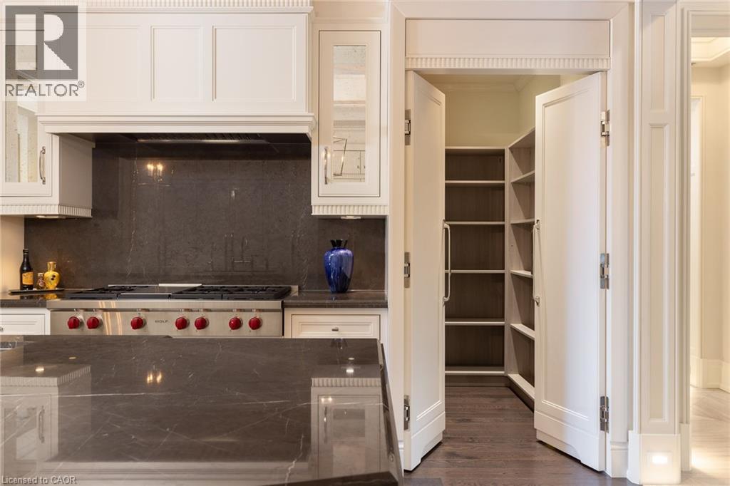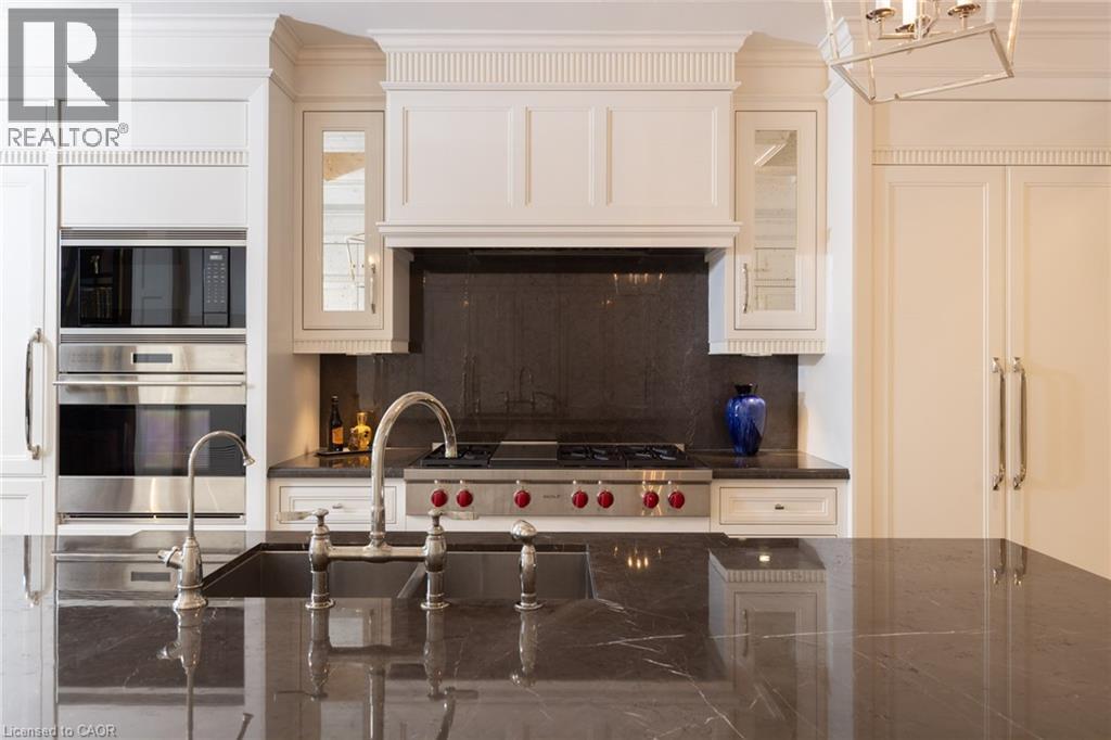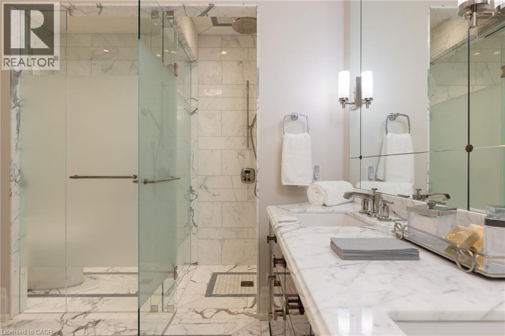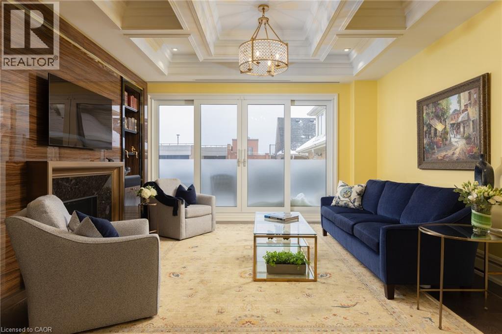Discover True Luxury Living in This Exceptional Oakville Suite. Welcome to an extraordinary residence that redefines sophisticated condominium living. This stunning two-bedroom suite encompasses an impressive 2,290 square feet of meticulously designed living space, where every detail has been carefully curated to create an atmosphere of refined elegance. Upon entering through the grand rotunda, you are immediately greeted by exquisite slab marble flooring that establishes the tone for the opulence that awaits within. The thoughtful design continues throughout, featuring rich hardwood flooring, intricate millwork, and striking zebra wood accents that speak to the exceptional craftsmanship found in this home. The gourmet kitchen presents a culinary enthusiast's dream, complete with top-of-the-line Wolf, Subzero, and Miele appliances, a generous island for meal preparation and casual gatherings, plus an entire wall of pantry cupboards, and walk-in pantry for additional storage. The Great Room beckons relaxation with built-in cabinetry, and a warm gas fireplace. Step through to the private 335 sq ft terrace for morning coffee or evening contemplation. Entertain graciously in the separate dining room, showcasing zebra wood built-in cabinetry with dedicated wine storage. The primary bedroom suite offers terrace access, a walk-in closet, and a luxurious 4 pc ensuite featuring a vanity area, radiant heated floors and a pampering Kohler toilet ($8500 value). The 2nd bedroom functions beautifully as a home office with custom built-ins and its own 3 pc ensuite. Modern convenience abounds with the integrated Crestron system controlling music, lighting, and motorized blinds throughout. 2 side-by-side parking spaces and a storage locker complete this offering. Built by the acclaimed Rosehaven Homes, this residence sits moments from Lake Ontario, fine dining, boutique shopping, & provides effortless access to major transportation routes including the nearby transit station. (id:63285)